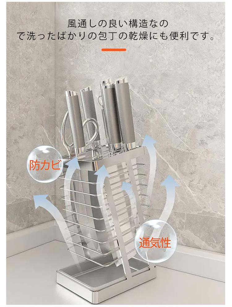 包丁スタンド 包丁立て 包丁ラック ナイフ収納 ステンレス 包丁収納 防カビ ナイフホルダー 通気性 水切れ 台所用品 キッチン収納 衛生的 省スペース お洒落 送料無料