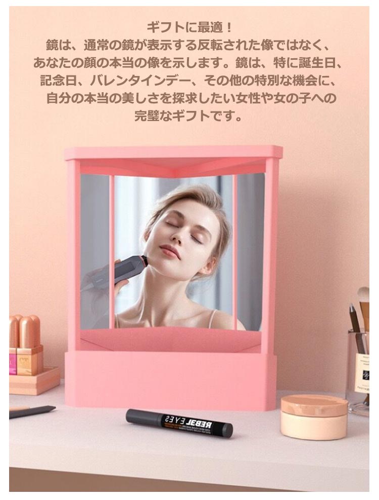 他人から見た本当の自分を映し出せる左右反転鏡(リバーサルミラー)。鏡に自分の姿を映すと、本来“他人から見られている自分”が映し出されます。顔の歪み、たるみを知ってメイクをさらに上達させます。ギフトに最適!鏡は、通常の鏡が表示する反転された像ではなく、あなたの顔の本当の像を示します。鏡は、特に誕生日、記念日、バレンタインデー、その他の特別な機会に、自分の本当の美しさを探求したい女性や女の子への完璧なギフトです。
