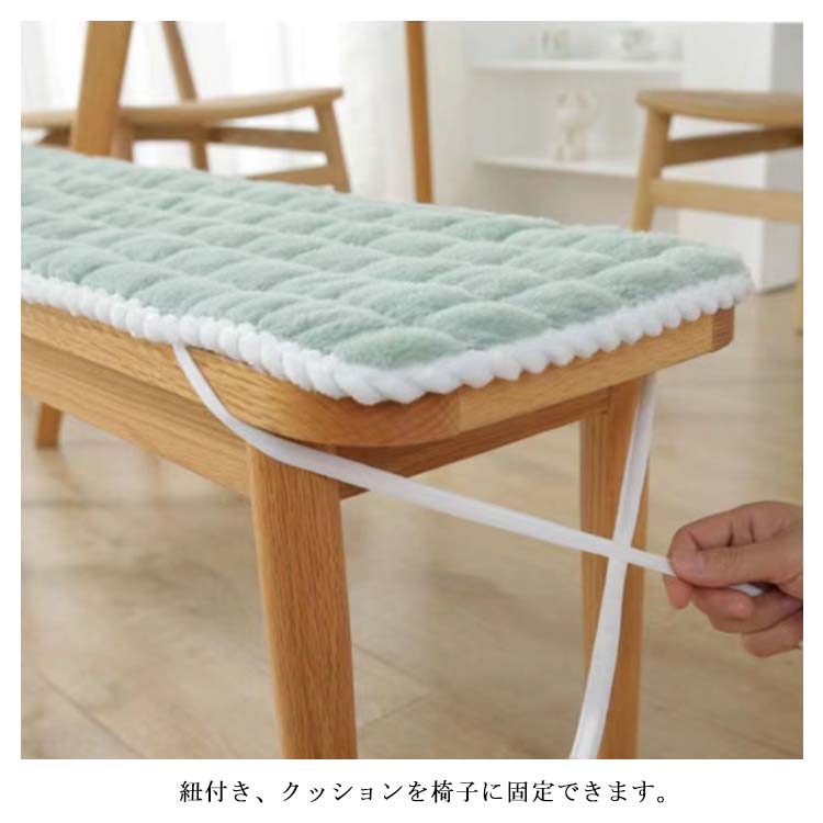 ベンチ シート クッション 長座布団 ベンチクッション チェアパッド 紐付き 滑り止め 長方形 1人掛け 2人掛け 椅子用 クッション シートクッション 長椅子 柔らかい もこもこ 暖かい