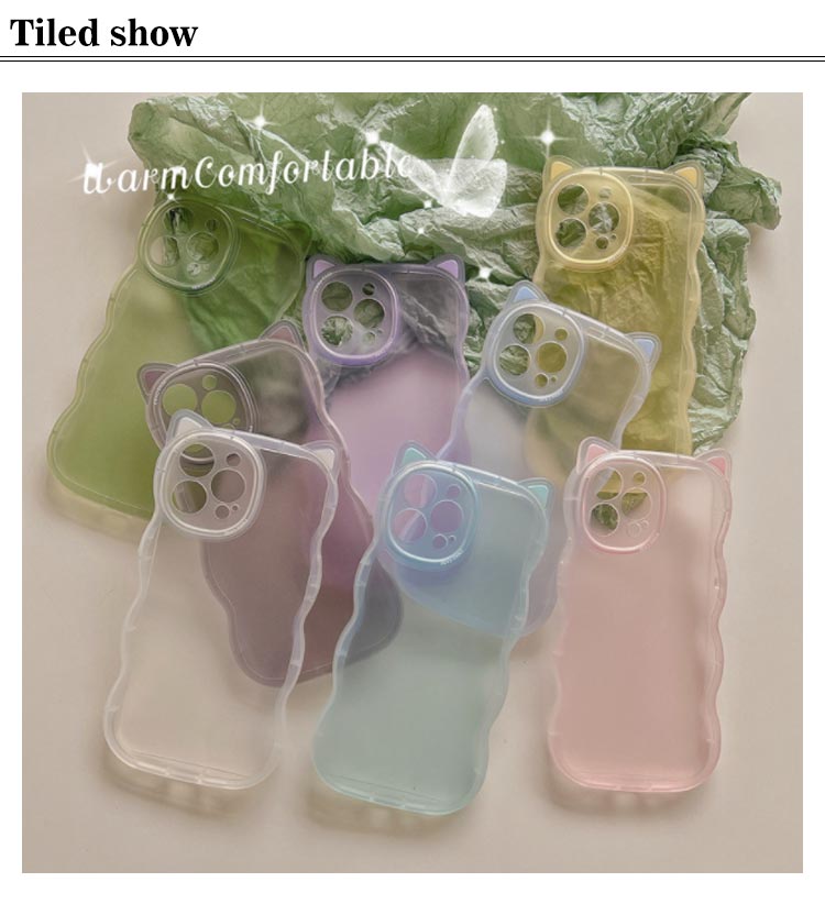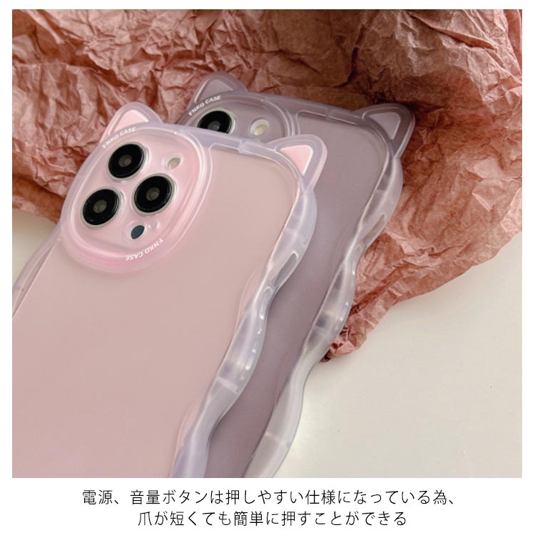 おしゃれなデザインでコーデに合わせやすく、程よい存在感猫の耳 ウェーブケース電源、音量ボタンは押しやすい仕様になっている為、爪が短くても簡単に押すことができる柔軟で衝撃吸収性のあるTPU素材を使用個性的で可愛いネコのケース!