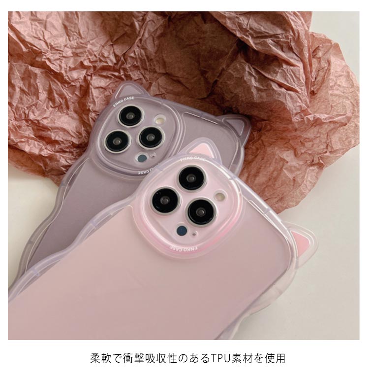 | おしゃれなデザインでコーデに合わせやすく、程よい存在感猫の耳 ウェーブケース 電源、音量ボタンは押しやすい仕様になっている為、爪が短くても簡単に押すことができる 柔軟で衝撃吸収性のあるTPU素材を使用 個性的で可愛いネコのケース! | |