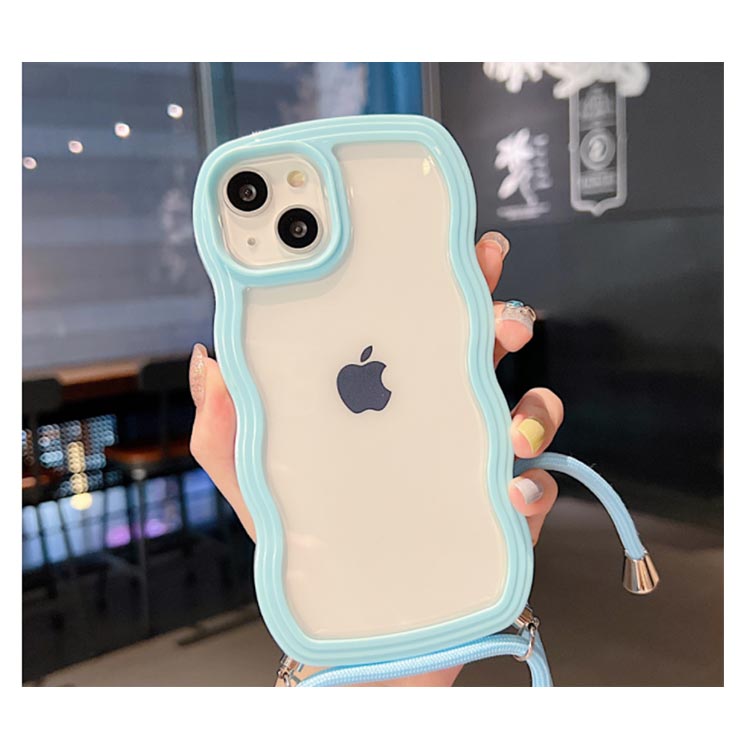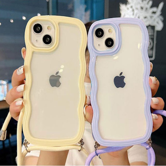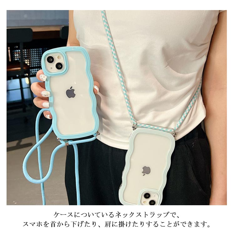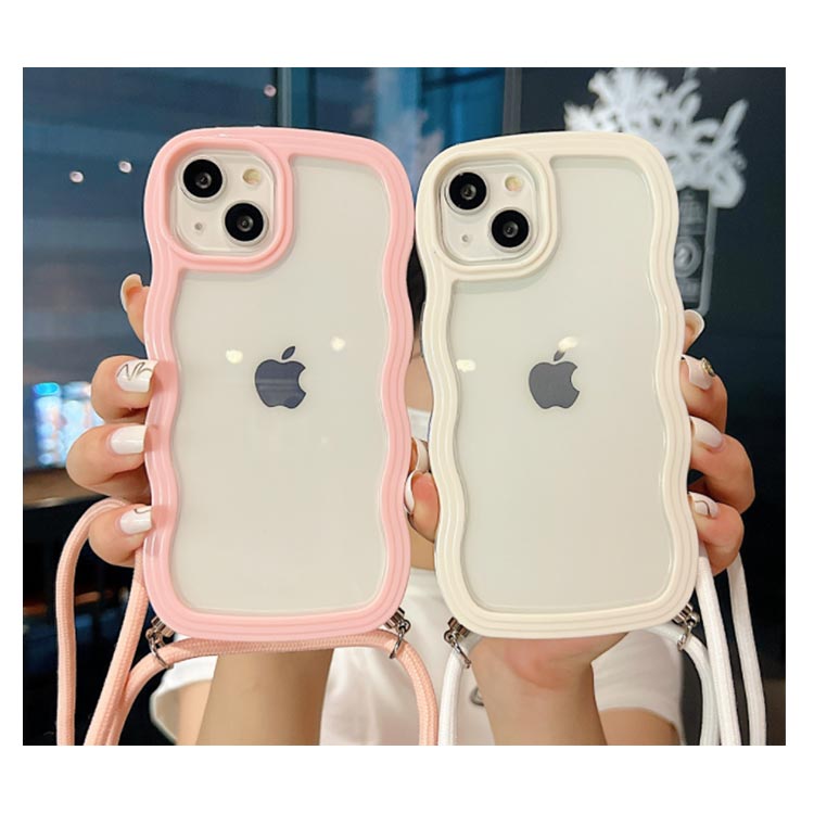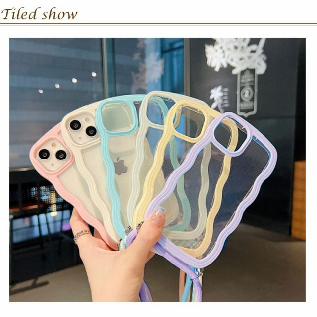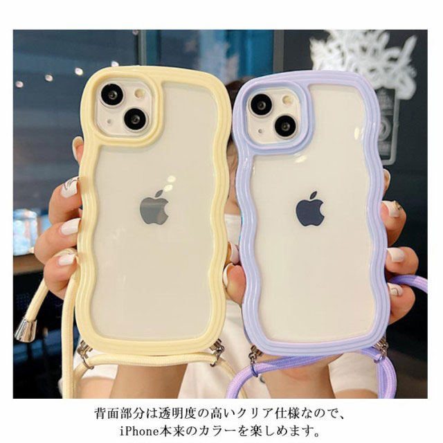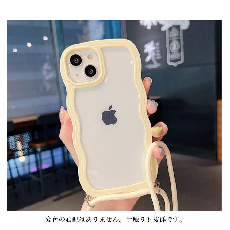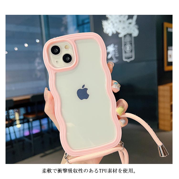 クリア iPhoneケース うねうね なみなみ ストラップ付き iphone14 plus iphone13pro max iphone12 斜め掛け 韓国 シリコン 耐衝撃 かわいい スマホケース ウェーブ クリアケース 透明 可愛い おしゃれ SNS 女子