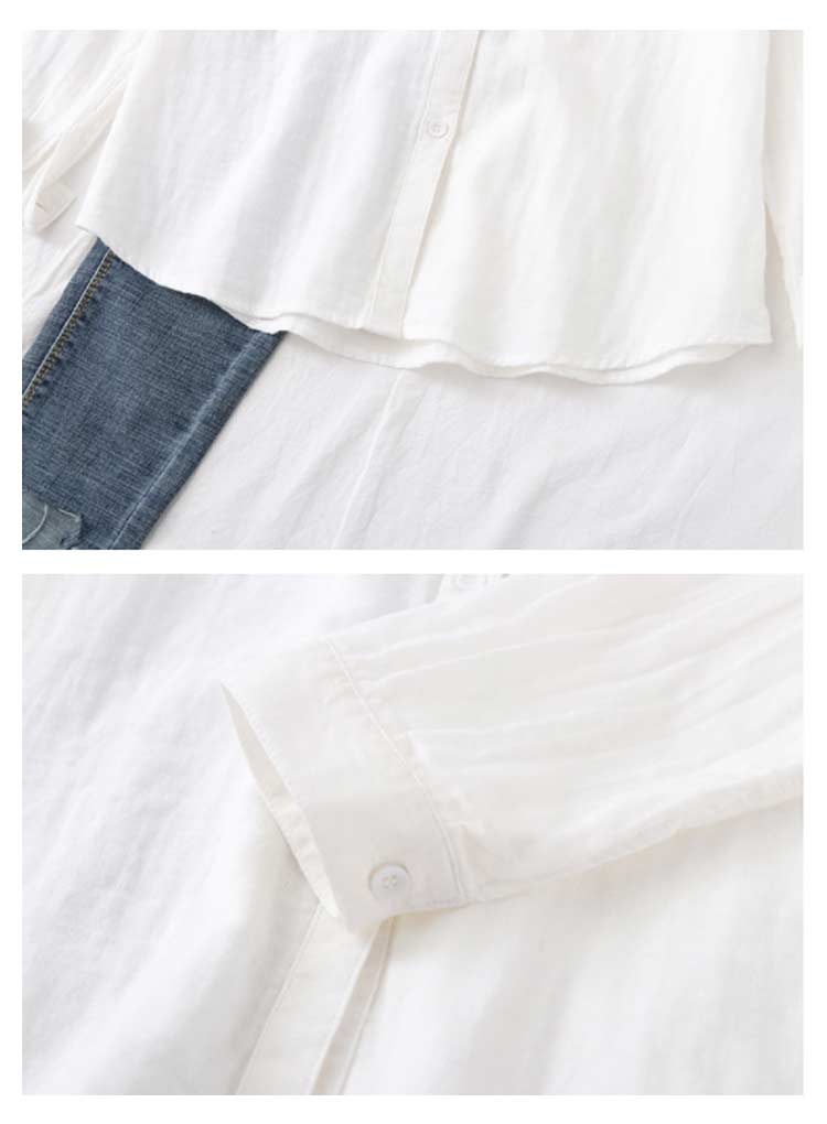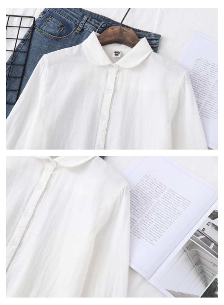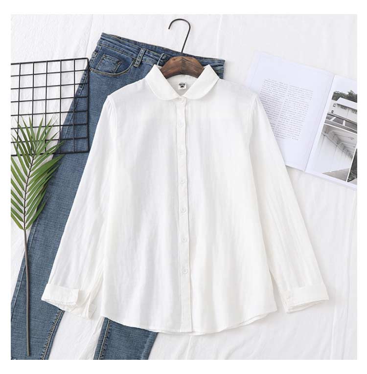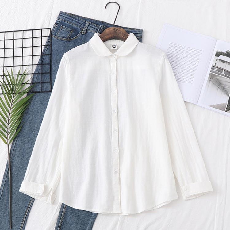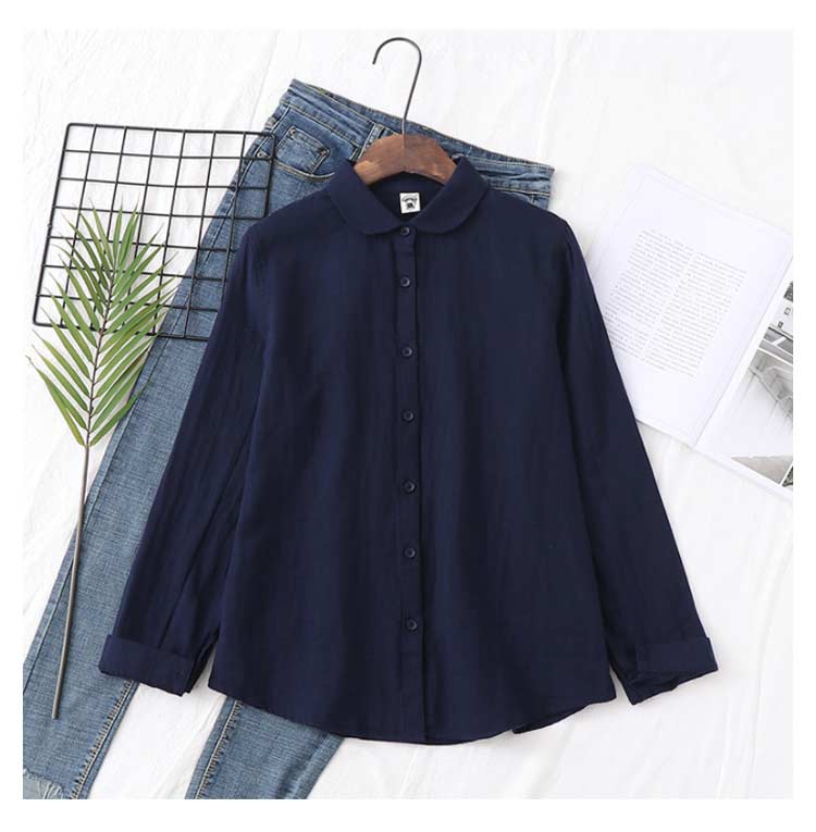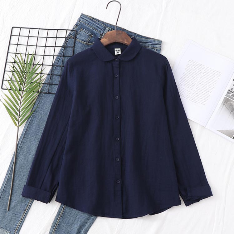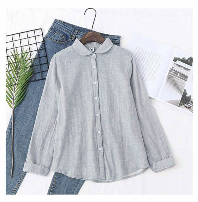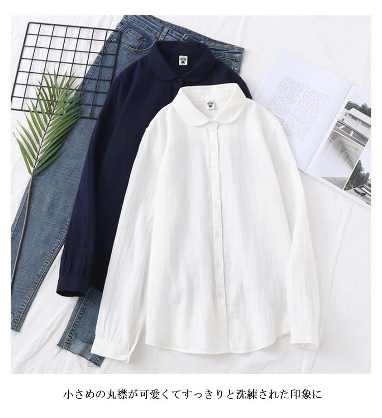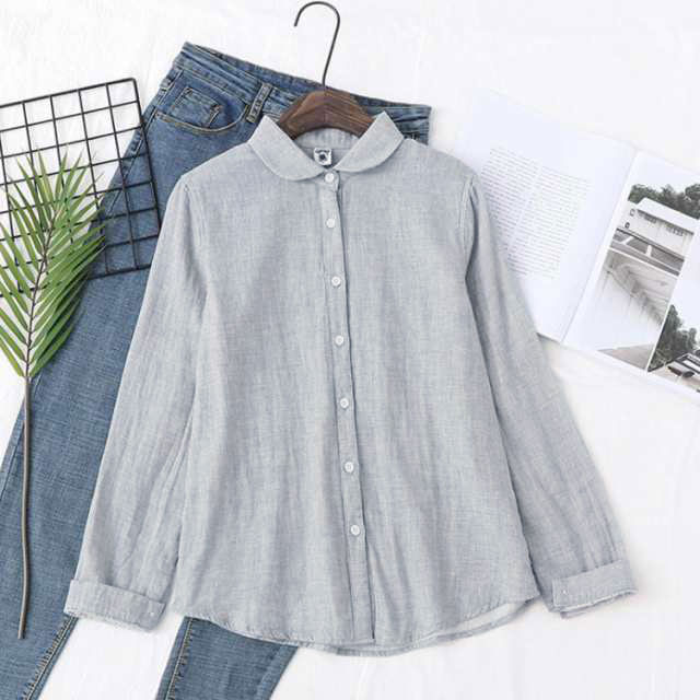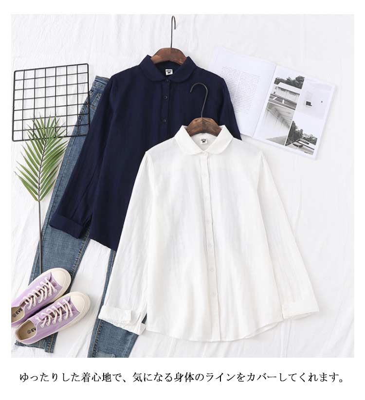 ナチュラルでおしゃれな丸襟長袖シャツが登場!小さめの丸襟が可愛くてすっきりと洗練された印象にゆったりした着心地で、気になる身体のラインをカバーしてくれます。柔らかくて、肌に馴染みやすい綿ガーゼ素材なので、春夏にもピッタリ。Tシャツの上から羽織って真ん中のボタン2つだけ留めるとか上からベストニットとあわせてもOK。コーディネート次第d年中使える優秀トップス。
