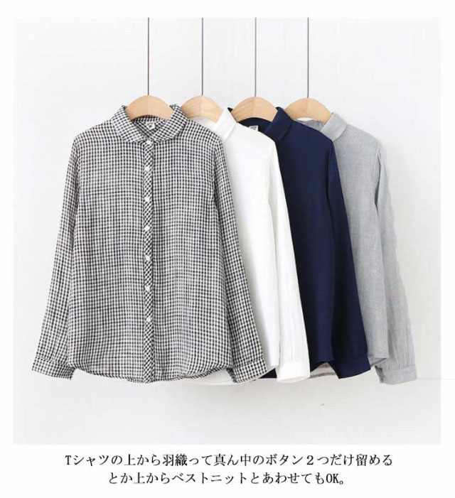 | ナチュラルでおしゃれな丸襟長袖シャツが登場! 小さめの丸襟が可愛くてすっきりと洗練された印象に ゆったりした着心地で、気になる身体のラインをカバーしてくれます。 柔らかくて、肌に馴染みやすい綿ガーゼ素材なので、春夏にもピッタリ。 Tシャツの上から羽織って真ん中のボタン2つだけ留めるとか上からベストニットとあわせてもOK。 コーディネート次第d年中使える優秀トップス。 | |