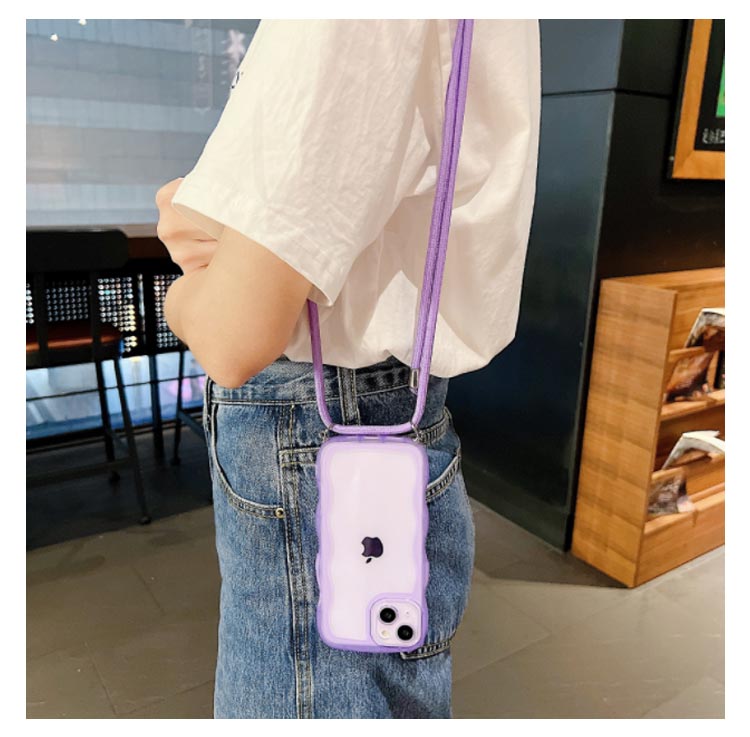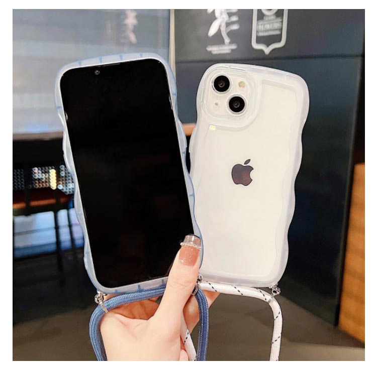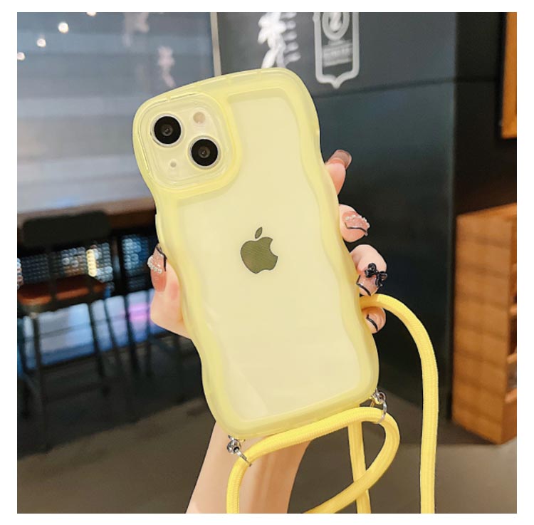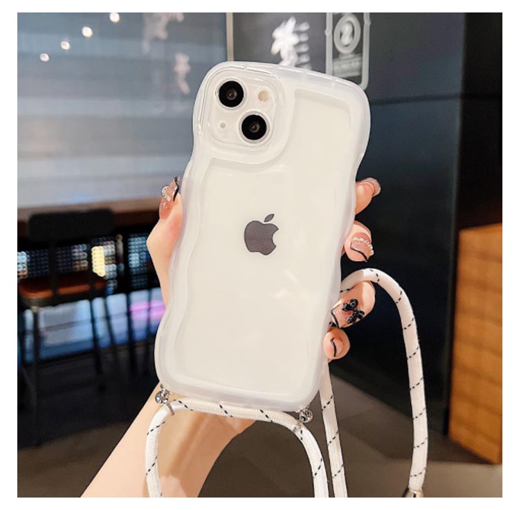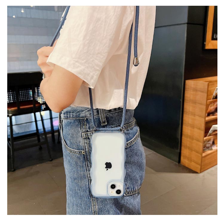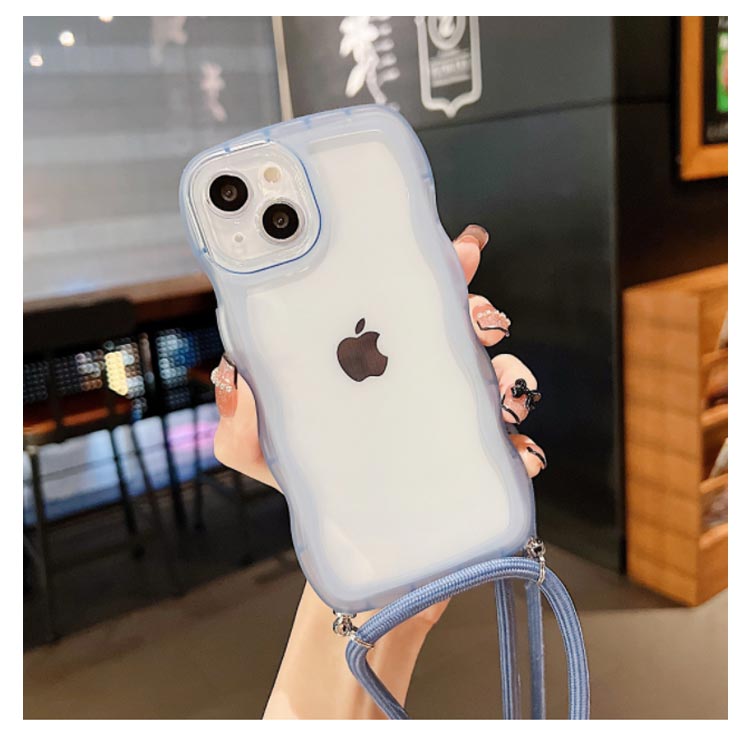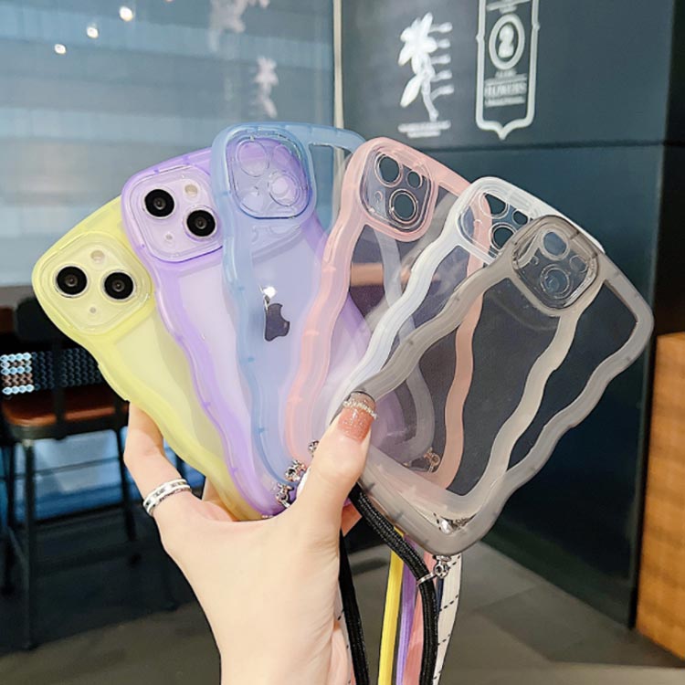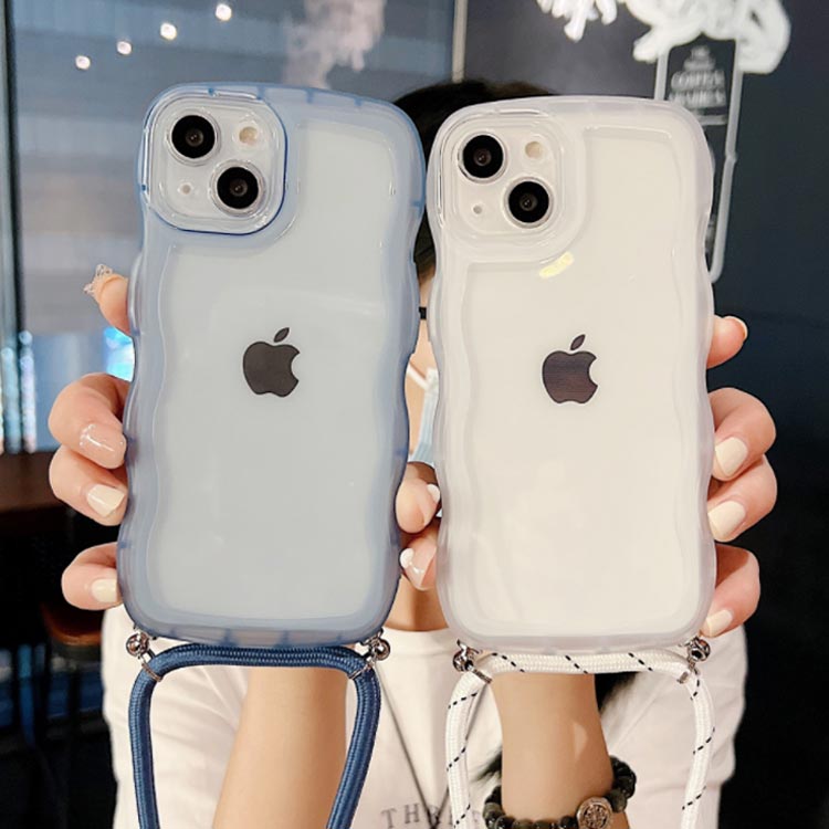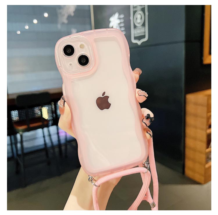 可愛いウェーブフレームのショルダーケース。ソフトなTPU素材で、スマホを優しくフィットし、落下などによる衝撃をしっかり吸収し、キズから守ってくれます。透明デザインで、iphone本体の色を活かすのも◎お好きなステッカーや写真を入れて、カスタマイズも◎ケース表面に施された指紋や汚れがつきにくいコーティングが施され、いつもサラサラ快適。各種ボタンや充電コネクタが正確設計、ケースをつけたままあらゆる操作がスムーズにできます。ショルダーストラップの長さ調節可能、斜め掛け・首掛け・肩掛けなどシーンや気分によって対応できます。