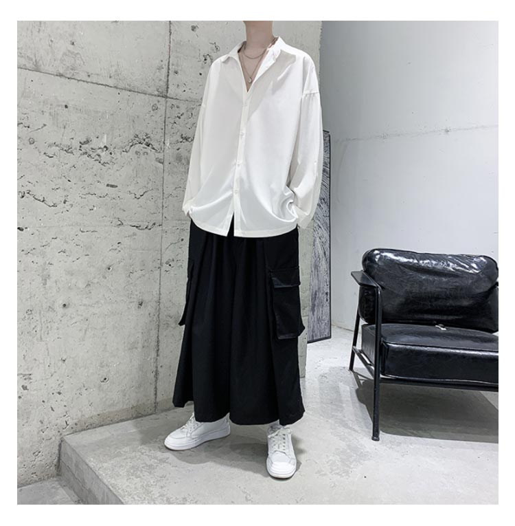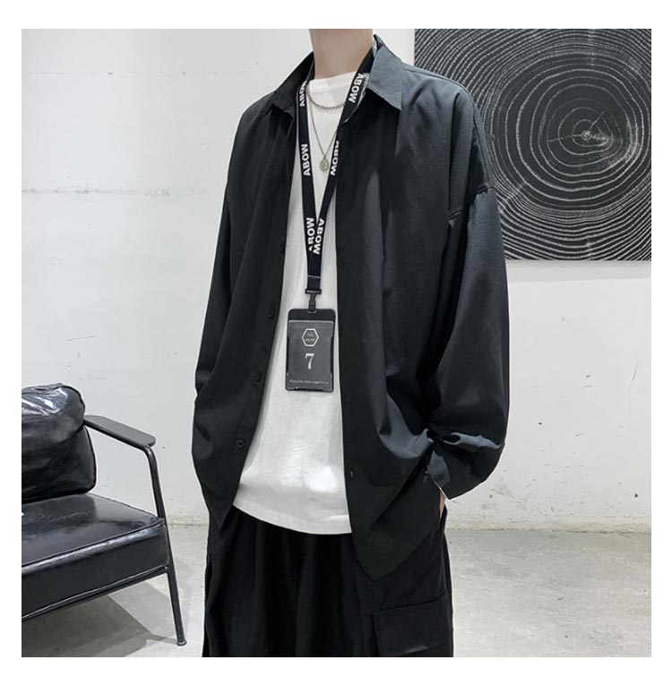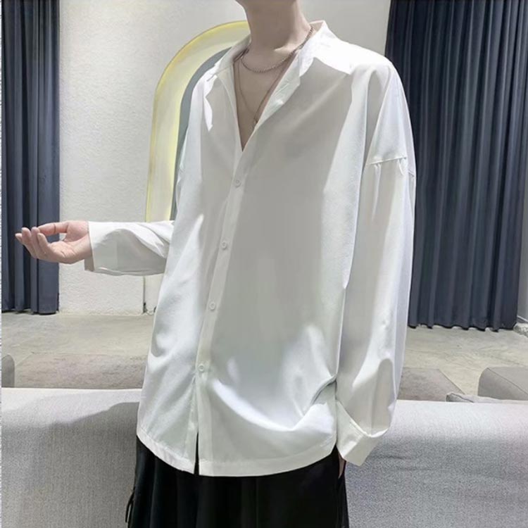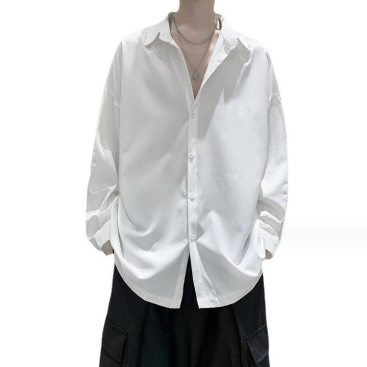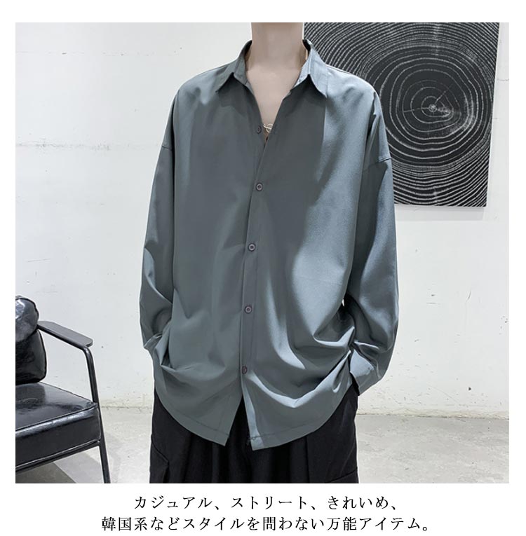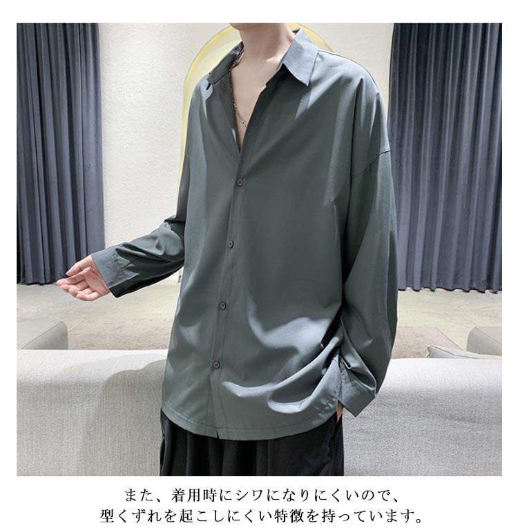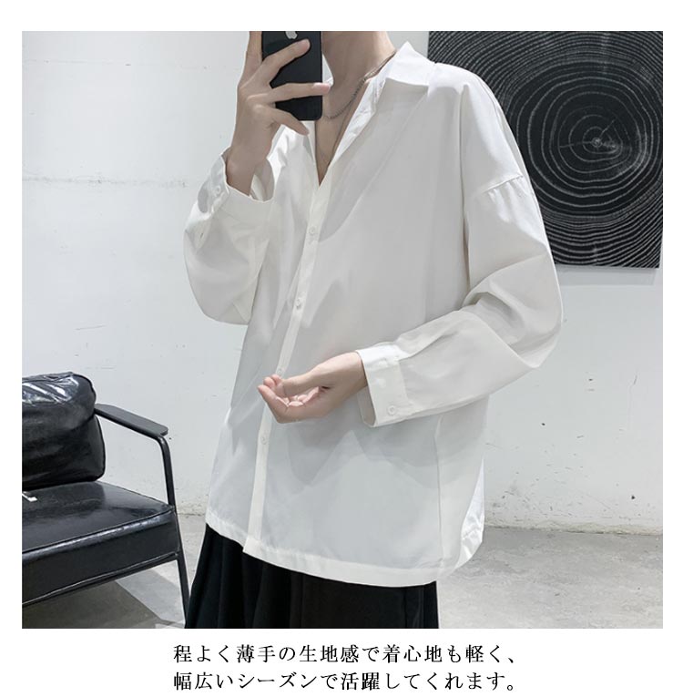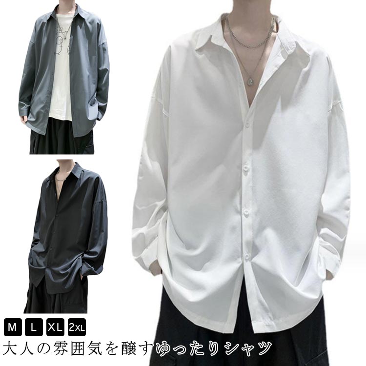 メンズ シャツ 長袖シャツ カジュアルシャツ 大きいサイズ ゆったり ドロップショルダー 白シャツ ワイシャツ Yシャツ 羽織り ビッグシルエット 無地 春 秋