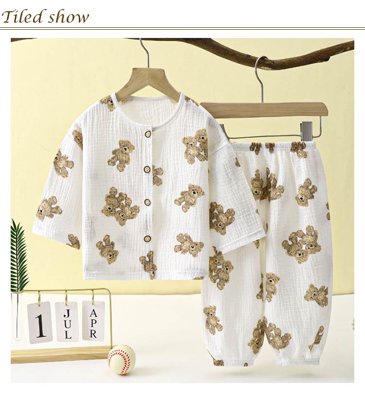 送料無料 キッズ パジャマ 2重ガーゼ コットン 長袖 前開き 長ズボン 上下セット ルームウェア ベビー 子供服 男の子 女の子 部屋着 ゆったり ロングパンツ 吸水速乾 通気性 総柄 かわいい 春 夏 秋 80 90 100 110 120 130 140 150