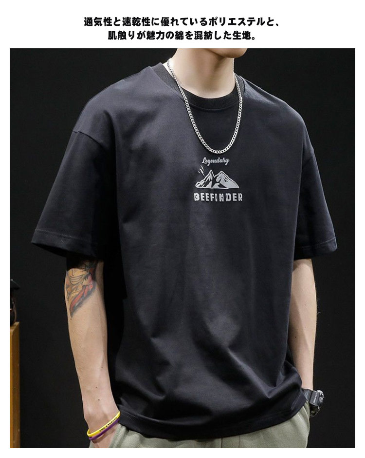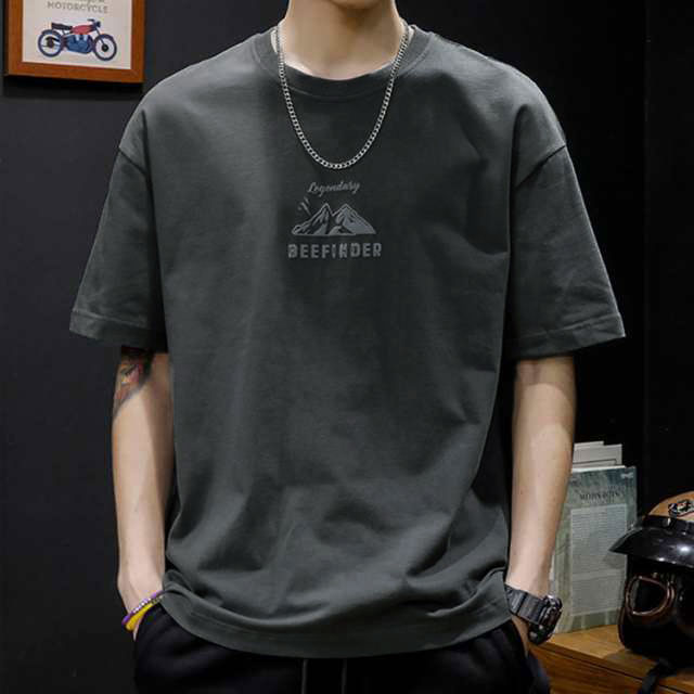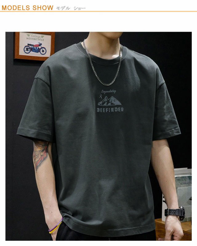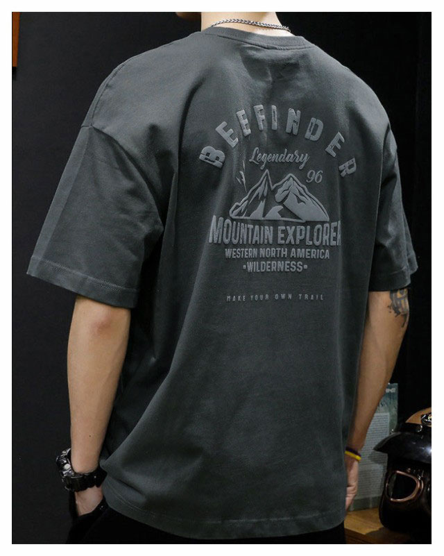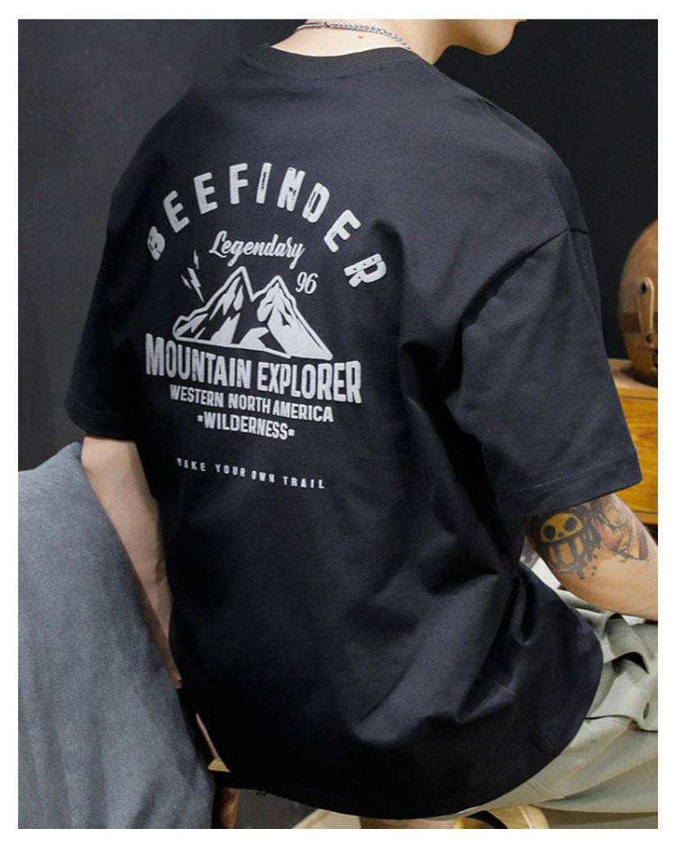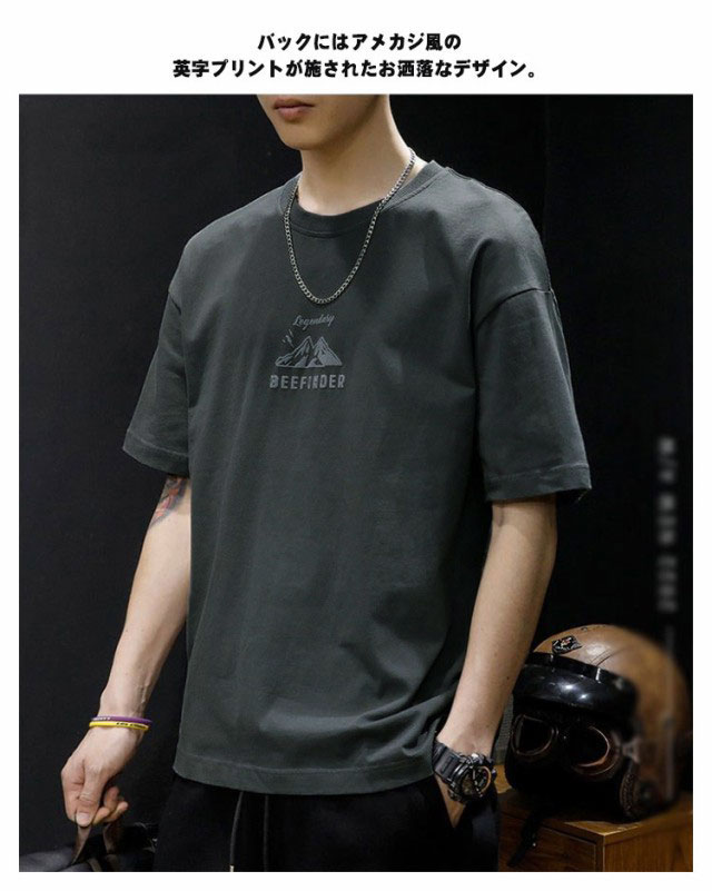 【送料無料】tシャツ メンズ アメカジ 半袖 丸首 バックプリント 古着風 レトロ カットソー トップス 山 英字 プリント ストリート カジュアル 大人 オーバーサイズ 大きいサイズ グレー 白 黒 かっこいい