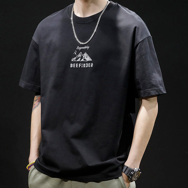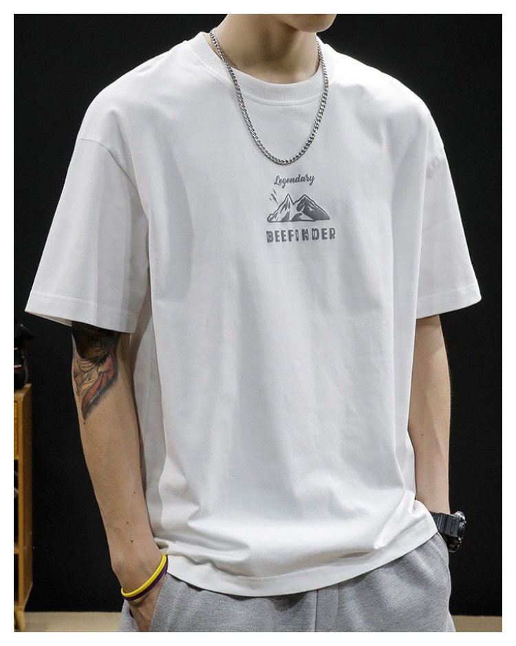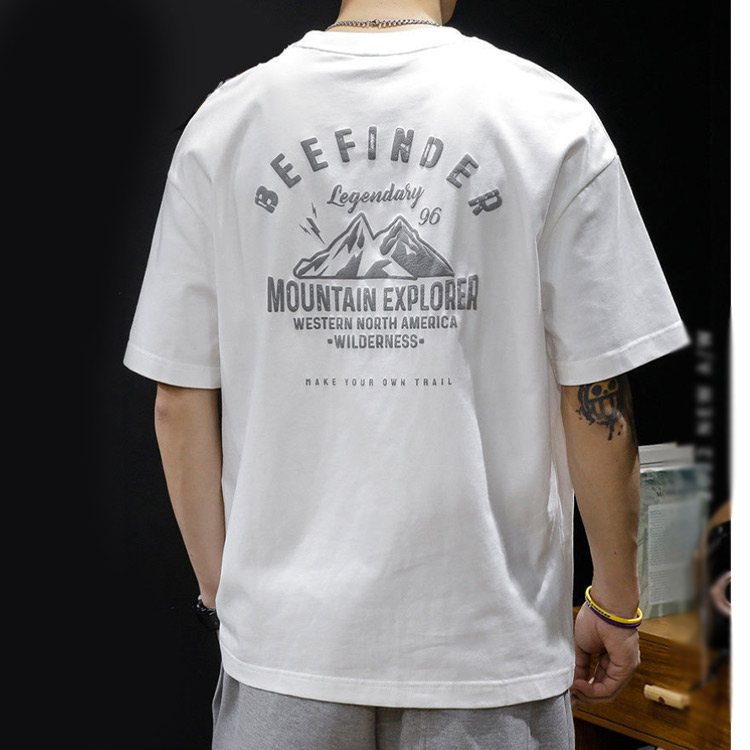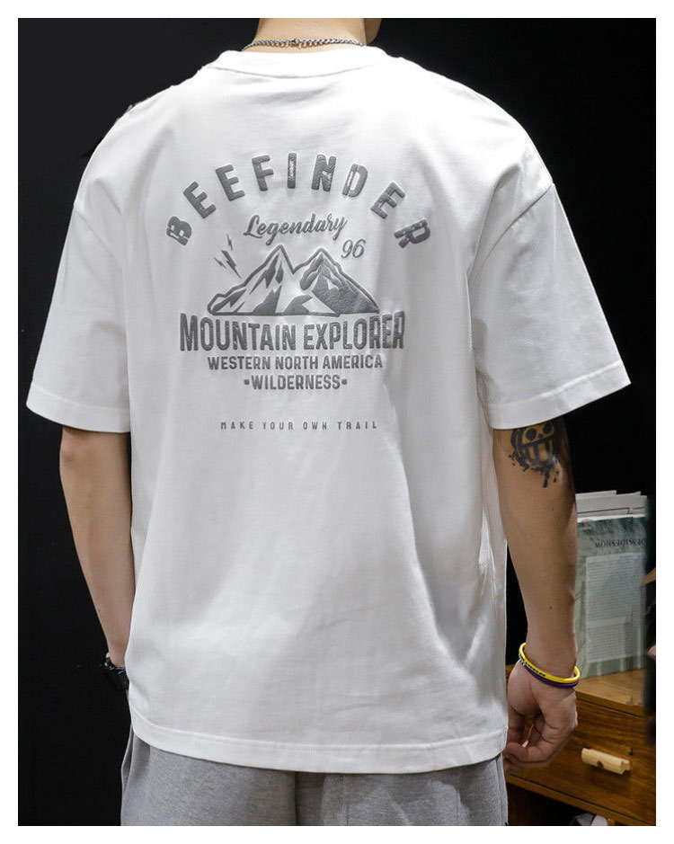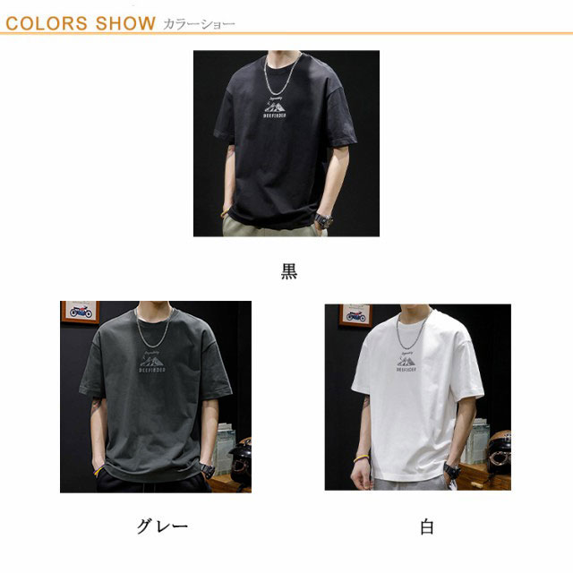 【送料無料】tシャツ メンズ アメカジ 半袖 丸首 バックプリント 古着風 レトロ カットソー トップス 山 英字 プリント ストリート カジュアル 大人 オーバーサイズ 大きいサイズ グレー 白 黒 かっこいい