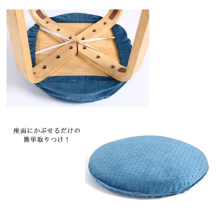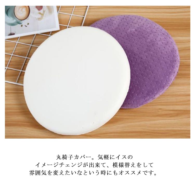| 丸椅子カバー。気軽にイスのイメージチェンジが出来て、模様替えをして雰囲気を変えたいなという時にもオススメです。 ふんわり弾力のあるクッションは長時間座っていても疲れにくく、一度使うとやみつきになるような快適な座り心地。 座面にかぶせるだけの簡単取りつけ! 裏面には全周ゴムが入っており、着脱しやすくぴったりフィットします。 | |