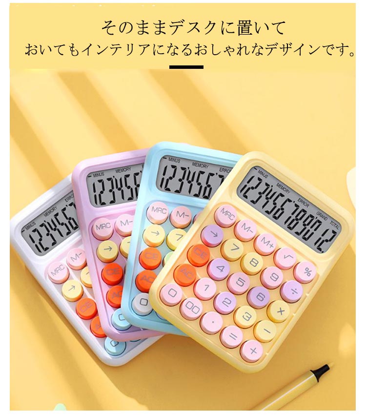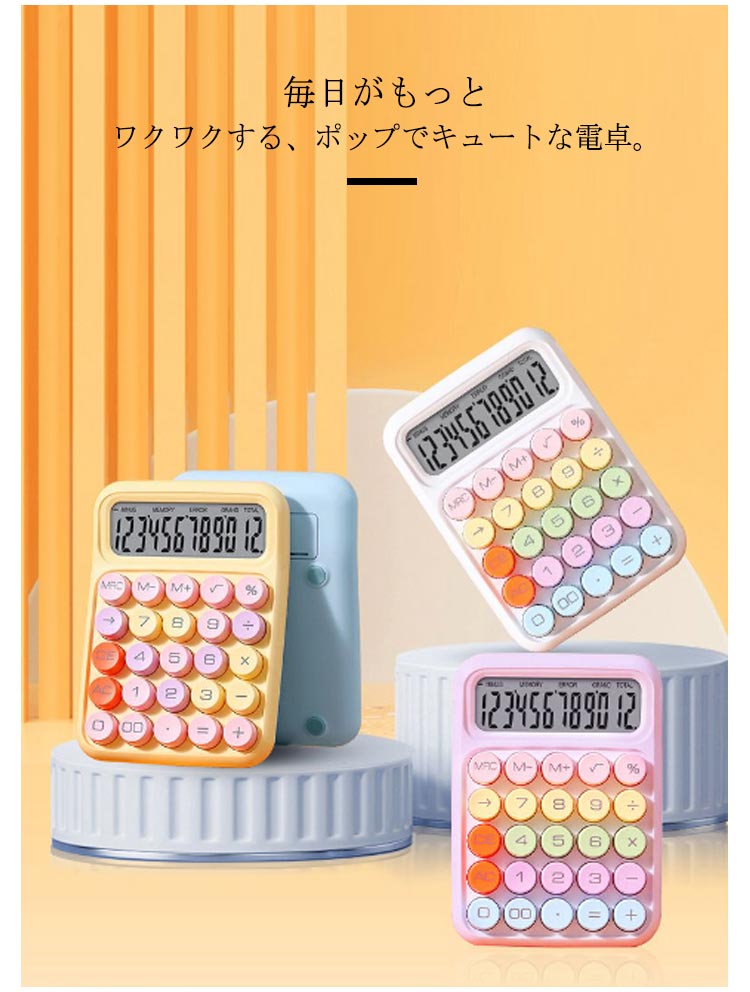 12桁 計算機 可愛い カフェ カラフル 電子計算機 卓上サイズ クリスマス ビジネス かわいい 電卓 大型LCDディスプレイ 業務実務 計算 薄型 持ち運び コンパクト おしゃれ 卓上電卓 オフィス 事務用 飲食店 美容室 ミニ サロン ギフト 贈り物 丸ボタン 送料無料