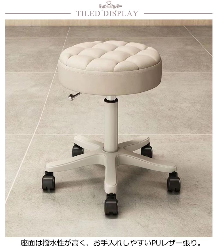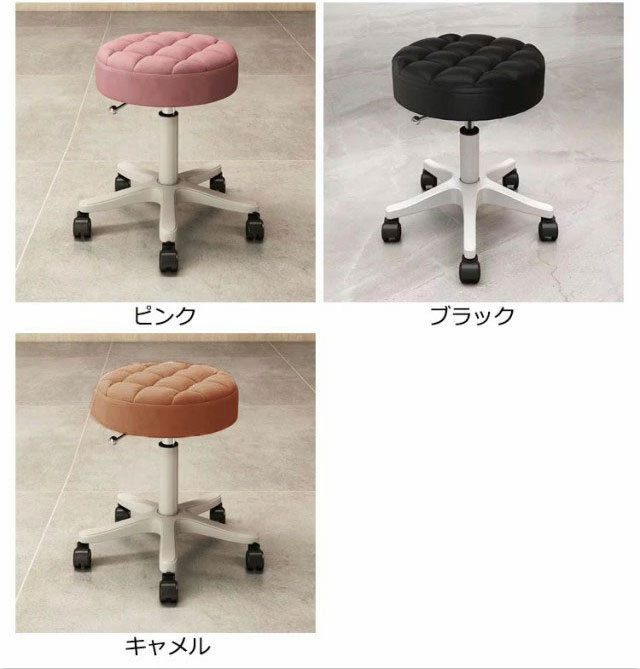 ラウンドスツール 美容室 丸椅子 キャスター付き 椅子 昇降式 ハイチェア 高さ35~45cm 高さ調節可能 PU スツール 回転椅子 イス カウンターチェア エステスツール ネイル サロン カットチェア 施術 診察 作業スツール 7色