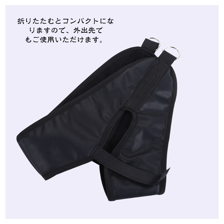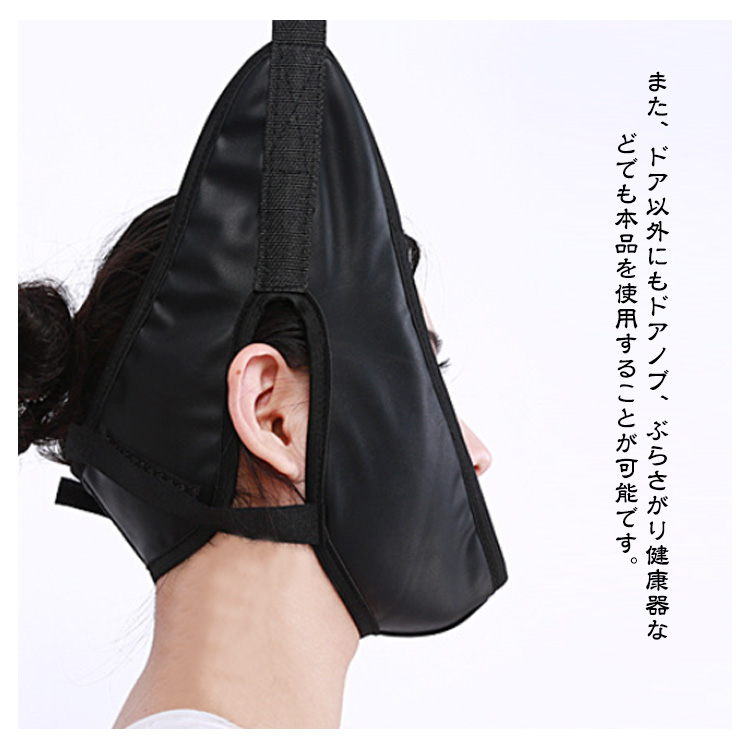 | ベルトのみ。おうちでのび~る首ベルト。 正常な状態であれば首がしっかりと頭を支えてくれますが、 スマホや長時間のデスクワークにより姿勢が悪くなると、首にかかる負担はその何倍にもなります。 そのままにせず、自宅で日々の負担を解放しましょう! 折りたたむとコンパクトになりますので、外出先でもご使用いただけます。 また、ドア以外にもドアノブ、ぶらさがり健康器などでも本品を使用することが可能です。 | |