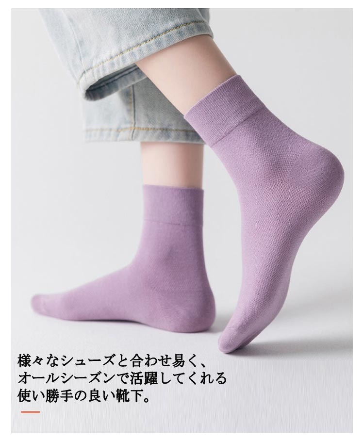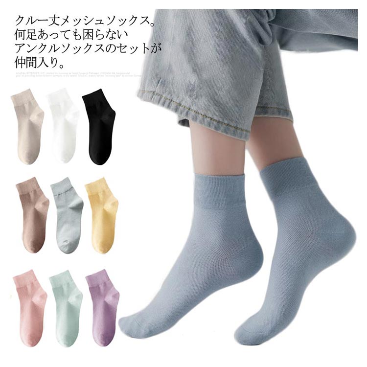【送料無料】ソックス 接触冷感 5足セット 靴下 クルー丈 レディース 夏用 薄手 メッシュ 黒 白 学生 女子 高校生 スクール 綿 吸汗 速乾 涼しい 通勤 通学 蒸れない 臭わない 抗菌 防臭 無地 カラフル
