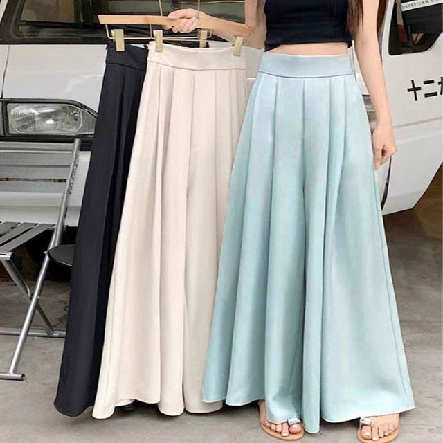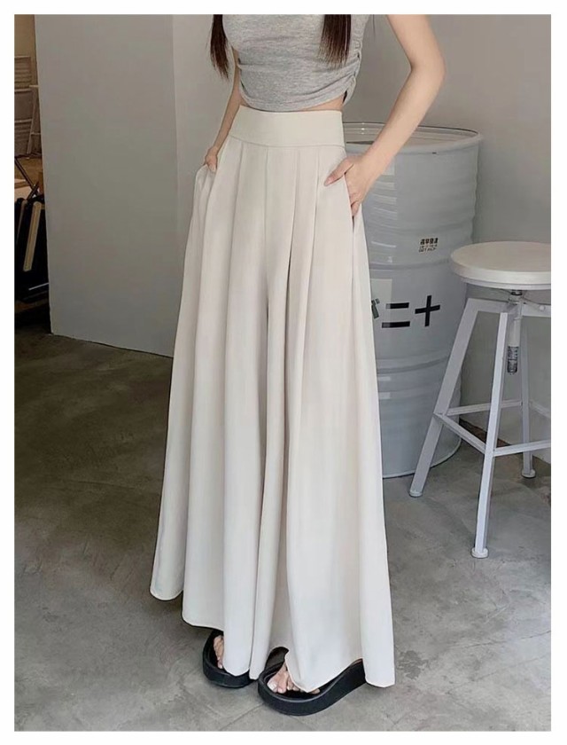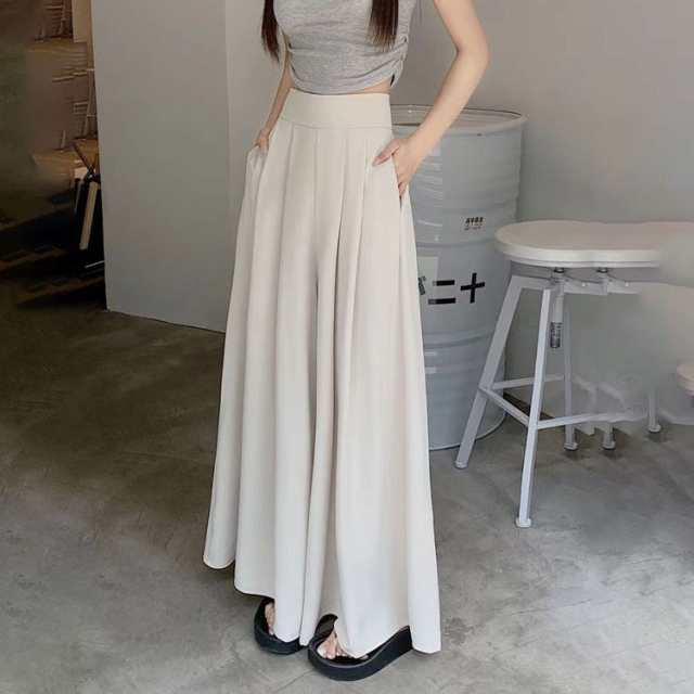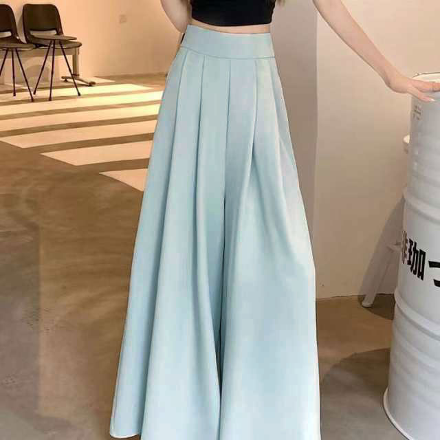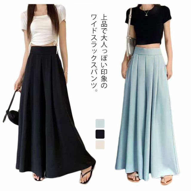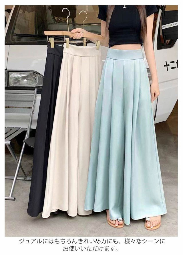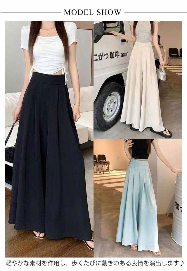 スラックスパンツ レディース ワイドパンツ ゆったり スラックス 春 夏 薄手 ガウチョパンツ フレア パンツ ボトムス プリーツ ロングパンツ ハイウェスト カジュアル おしゃれ 無地 韓国ファッション 快適性 大きいサイズ 体型カバー スカンツ スカーチョ 可愛い