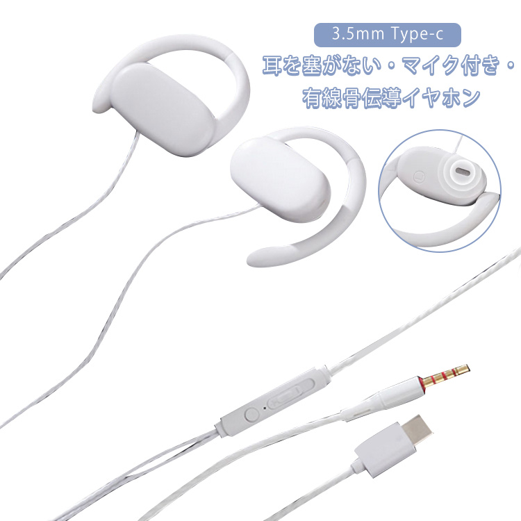 耳を塞がない 有線イヤホン オープンイヤー 開放型 イヤホン ながら聴き 骨伝導イヤホン マイク付き 骨伝導ヘッドフォン 耳掛け 耳掛けイヤホン 外音取り込み ハンズフリー通話 ゲーミングイヤホン 骨伝導振動