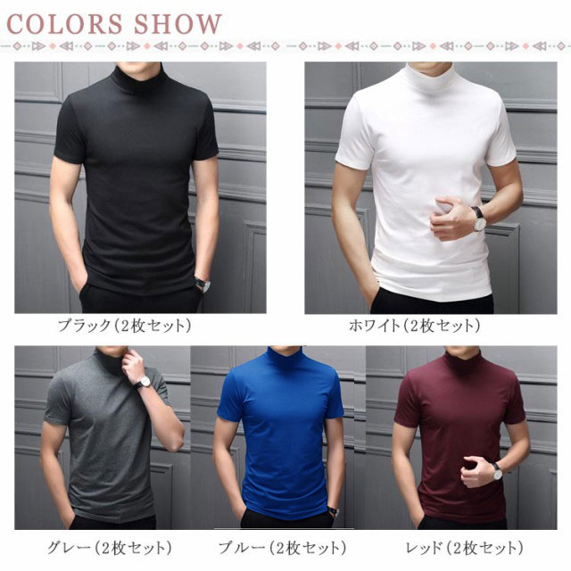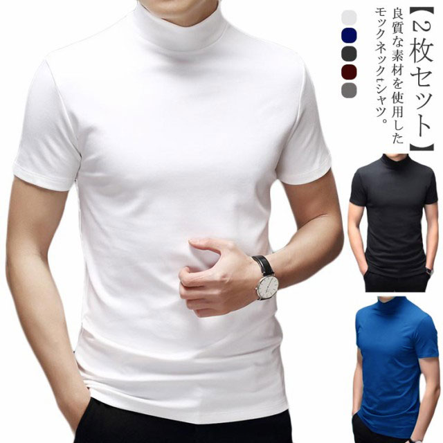 【2枚セット】ゴルフウェア ハイネック 半袖 メンズ Tシャツ メンズtシャツ 半袖 モックネック ゴルフtシャツ ストレッチ 無地 モックネックシャツ ハイネックtシャツ トップス カットソー スポーツウェア ランニング ゴルフウェア 半袖Tシャツ 父の日 春 夏