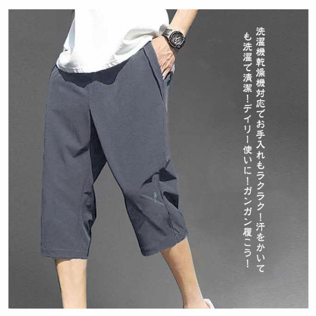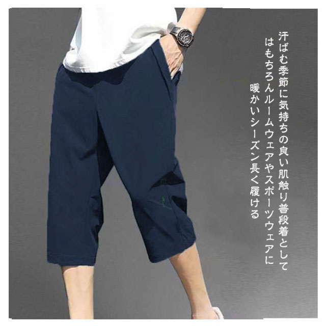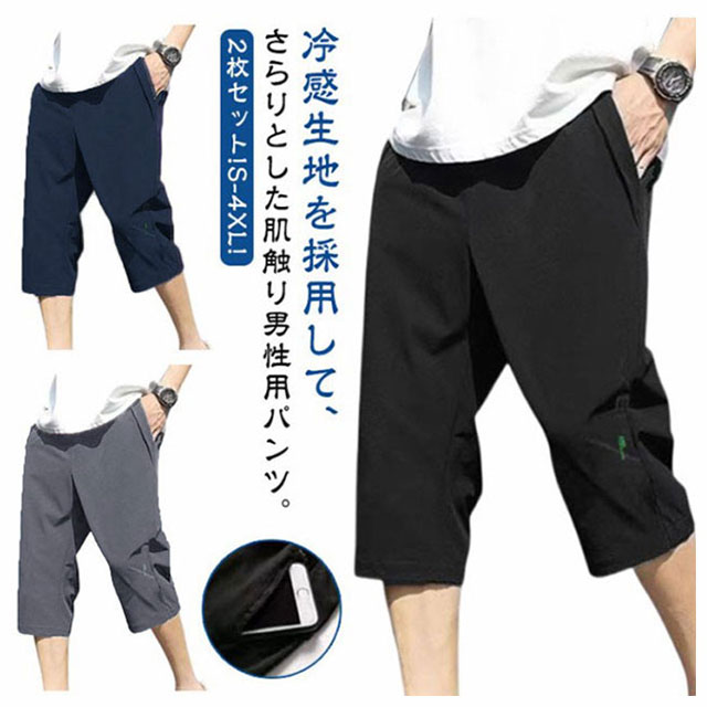 クロップドパンツ メンズ 2枚セット 冷感パンツ 七分丈 接触冷感 夏 ひんやり ハーフパンツ ひざ下 ワークパンツ ジャージ 吸汗速乾 大人 作業着 通学 冷感 フィットネス UVケア ドライメッシュ ストレッチ UVカット ドライ アウトドア キャンプ 夏物 夏服