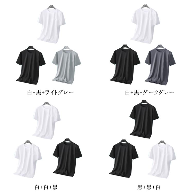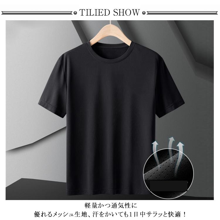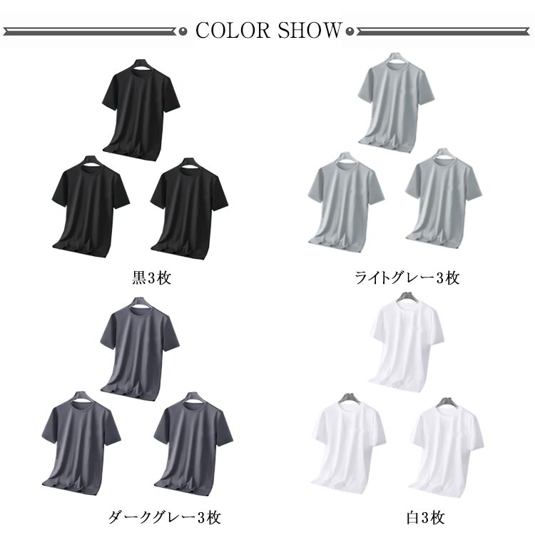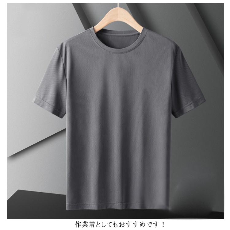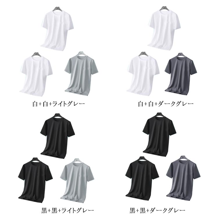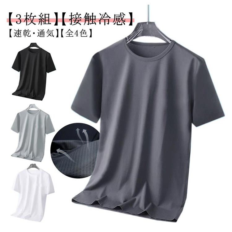 【3枚組】接触冷感 tシャツ 半袖 メンズ メッシュ 吸汗 速乾 ドライ 無地 通気性 トップス 夏 カットソー 半袖Tシャツ 夏服 スポーツ クルーネック クール 作業着 アイスシルク 白 黒 グレー 涼しい ひんやり シンプル 薄手