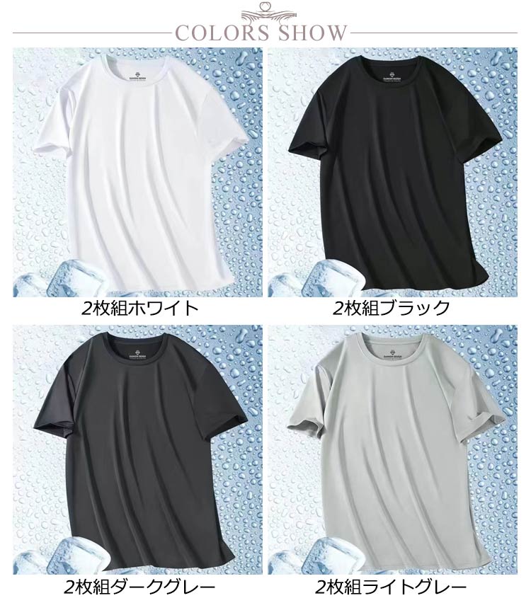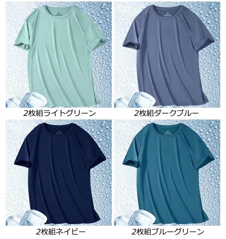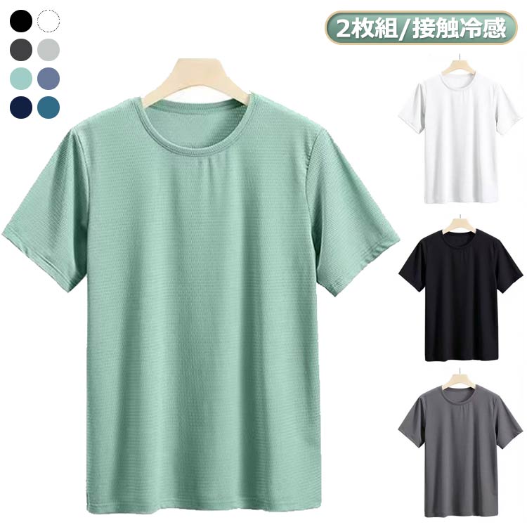 2枚組 大きいサイズ クールコア 半袖 Tシャツ 接触冷感 夏用 涼しい トップス クルーネック 吸汗速乾 UVカット メンズ 涼感 スポーツ 作業服 作業着 ランニング 送料無料