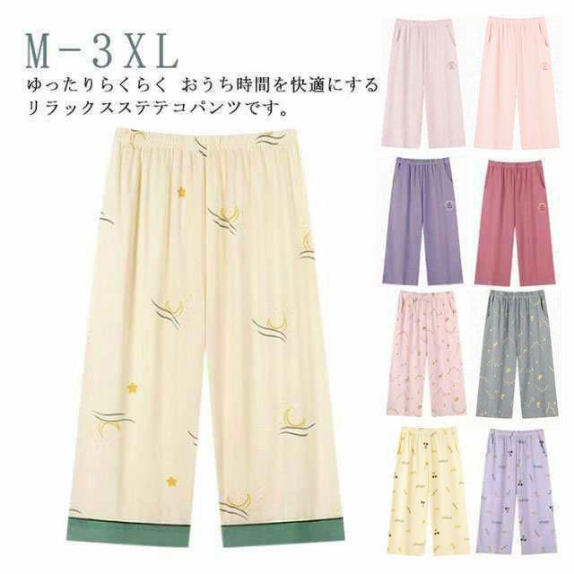 ステテコ レディース 部屋着 夏 カプリパンツ ひざ下 リラックスパンツ ルームウェア イージーパンツ パジャマ 夏用 ルームパンツ 7分丈 ズボン 婦人 女性 花柄 ボトムス リラックス 涼しい かわいい 可愛い おしゃれ 大きいサイズ ゆったり 薄手 ひんやり 送料無料