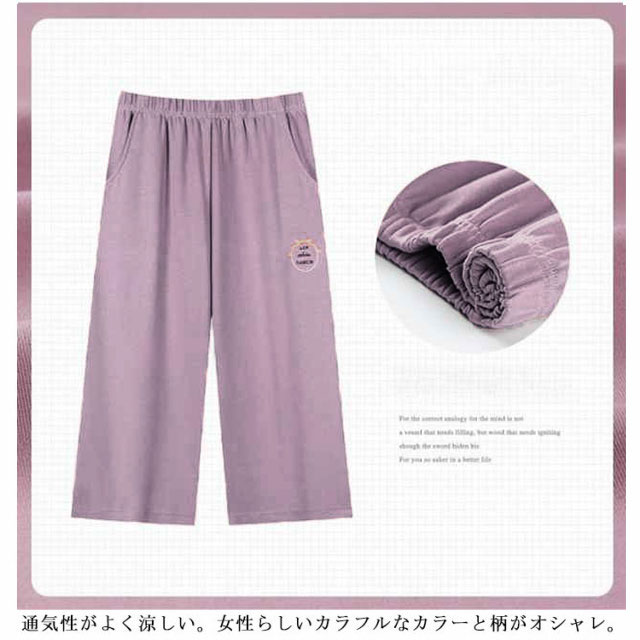 | ゆったりらくらく おうち時間を快適にするリラックスステテコパンツです。 ゆったりシルエット、ウエストゴム、両サイドにポケット付きでストレスフリーな履き心地です。 春秋はもちろん、夏用のパジャマとしても活躍してくれます。 リラックスタイムにぴったり? 通気性がよく涼しい。女性らしいカラフルなカラーと柄がオシャレ。 | |