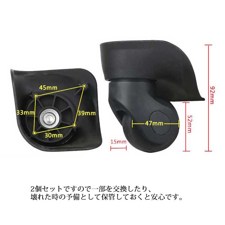 2個セット スーツケース 交換用キャスター 付け替え 交換用タイヤ キャスター 修理 車輪 ホイール ローラー キャリーケース キャリーバッグ 車輪 左右セット タイヤ 修理 交換 取り替え エコノミック 修理 送料無料