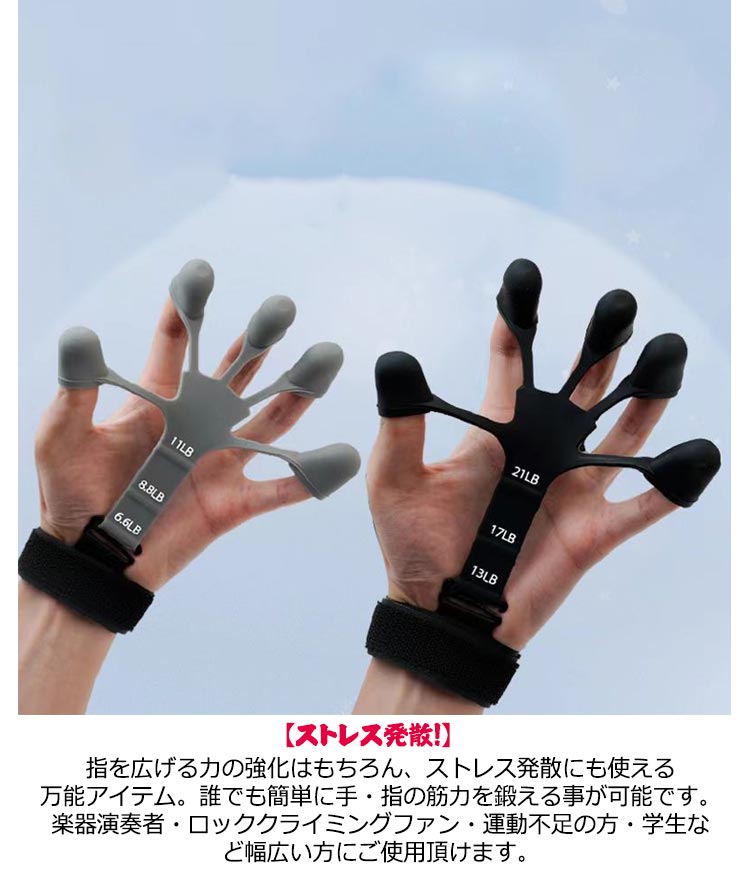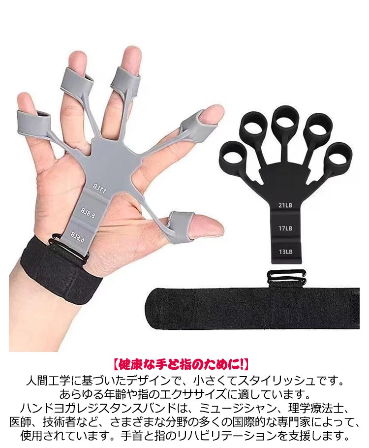 フィンガートレーナー 2個セット 穴あり・穴なし2タイプ【指のエクササイズ!】ハンドグリップトレーニング機器は、指、手首、および前腕の強度を高めるように設計されています。指を離して伸ばすようにトレーニングするリハビリテーションスポーツです。各フィンガートレーナーを個別に、または手腕全体を強化して運動させます。ハンドエクササイズは、強さ、器用さ、持久力のために各指を個別に分離してエクササイズします。【健康な手と指のために!】人間工学に基づいたデザインで、小さくてスタイリッシュです。あらゆる年齢や指のエクササイズに適しています。ハンドヨガレジスタンスバンドは、ミュージシャン、理学療法士、医師、技術者など、さまざまな分野の多くの国際的な専門家によって、使用されています。手首と指のリハビリテーションを支援します。【ストレス発散!】指を広げる力の強化はもちろん、ストレス発散にも使える万能アイテム。誰でも簡単に手・指の筋力を鍛える事が可能です。楽器演奏者・ロッククライミングファン・運動不足の方・学生など幅広い方にご使用頂けます。【幅広い世代に向け!】強度を調節することができて、健康維持のために指の開く力を鍛えたい人におすすめの筋トレグッズです。軽量で高齢者や筋トレ初心者、女性に非常におすすめのアイテムになります。関節炎、関節リウマチ、手根管症、腱鞘炎、ロッククライマー、ボールスポーツ愛好家、ミュージシャンに指の柔軟性を向上させるのに適しています。また、コンパクトで軽量で、バッグやポケットに入れて持ち運びに便利です。【耐性】グレー6.6LB、8.8LB、11LB、ブラック13LB、17LB、21LB