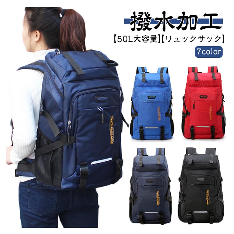 送料無料 リュック 50L 大容量 防水 リュックサック アウトドア 登山 旅行 バッグ バックパック メンズ レディース 防災 登山用リュック 出張 黒 大人 大学生 高校生 丈夫 通勤 ビジネス 大きい ビッグサイズ 山登り ハイキング 遠足 7色 軽量 撥水 男女兼用 部活