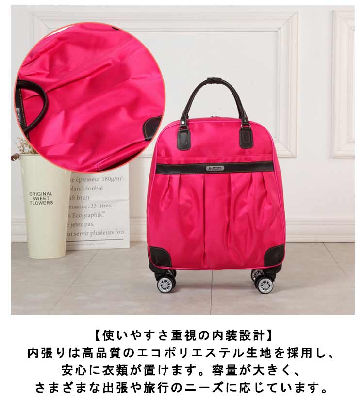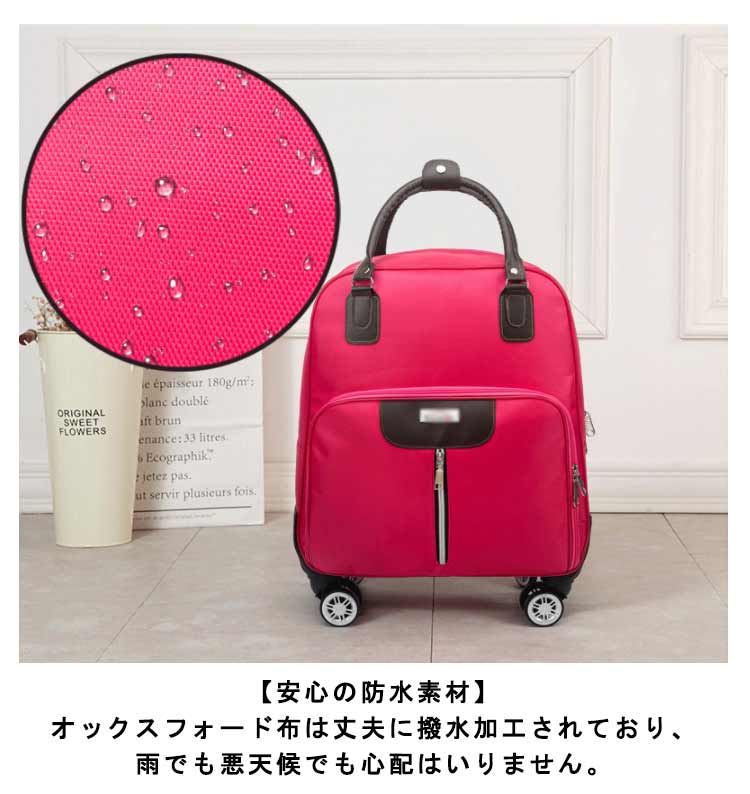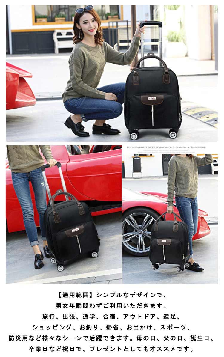 【超軽量】軽い素材を使用することで超軽量モデルを実現。機内持ち込みOK!【キャスター搭載】360度回転のキャスターはお客様の快適な旅路をサポートします。【多式伸縮ハンドル搭載】ボタンワンプッシュで高さの調整可能なので、お好みの高さでご使用いただけます。【安心の防水素材】オックスフォード布は丈夫に撥水加工されており、雨でも悪天候でも心配はいりません。【使いやすさ重視の内装設計】内張りは高品質のエコポリエステル生地を採用し、安心に衣類が置けます。容量が大きく、さまざまな出張や旅行のニーズに応じています。【適用範囲】シンプルなデザインで、男女年齢問わずご利用いただきます。旅行、出張、通学、合宿、アウトドア、遠足、ショッピング、お釣り、帰省、お出かけ、スポーツ、防災用など様々なシーンで活躍できます。母の日、父の日、誕生日、卒業日など祝日で、プレゼントとしてもオススメです。