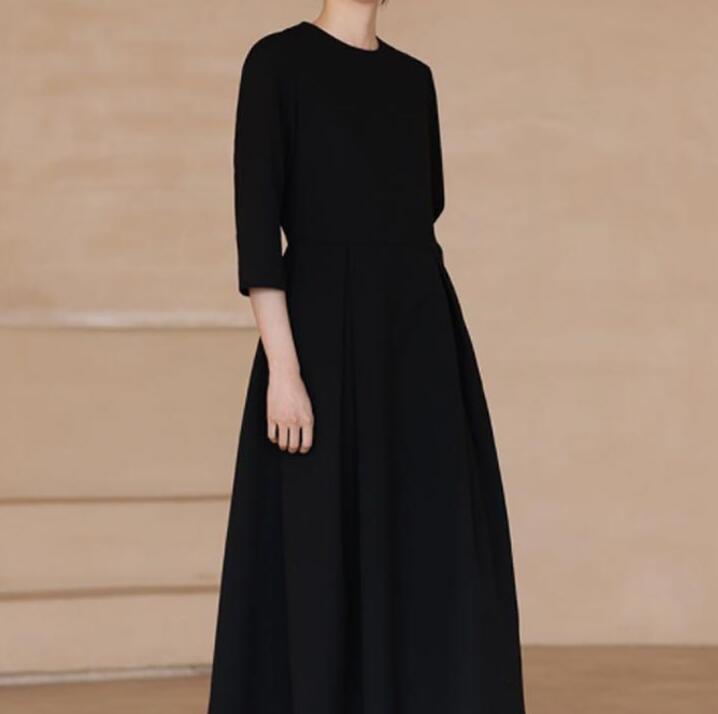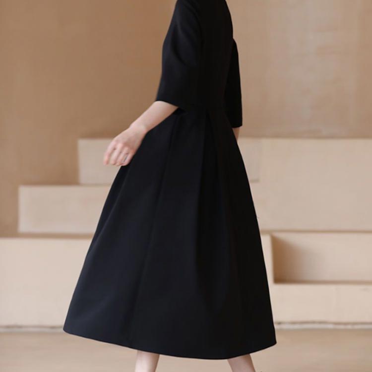 ワンピース 5分袖 ブラック レディース フォーマル 大人 クルーネック 春秋 夏 着瘦せ 膝下 マキシ丈 ロングワンピース 大きいサイズ 上品 結婚式 パーティ 発表会 エレガント 通勤 OL 大人 女性 無地 シンプル S M L ギフト プレゼント 送料無料