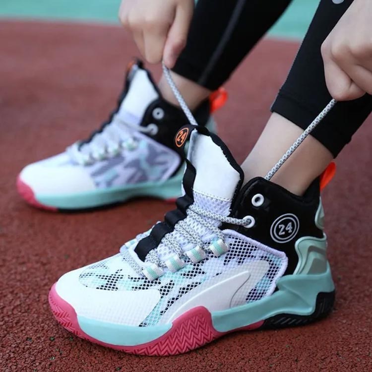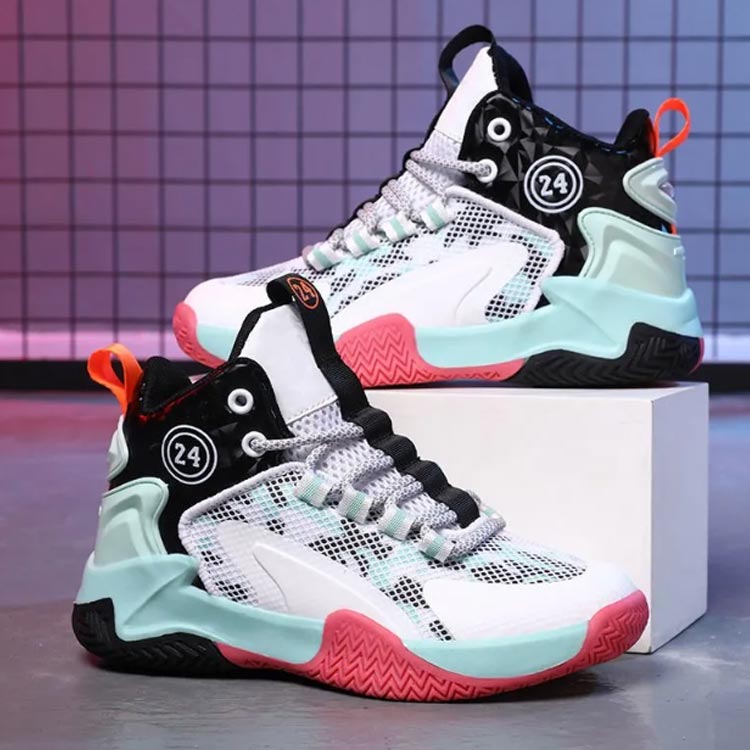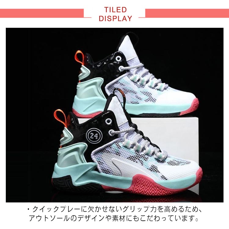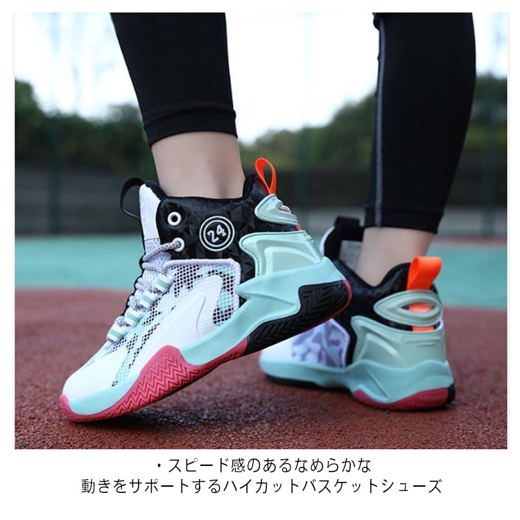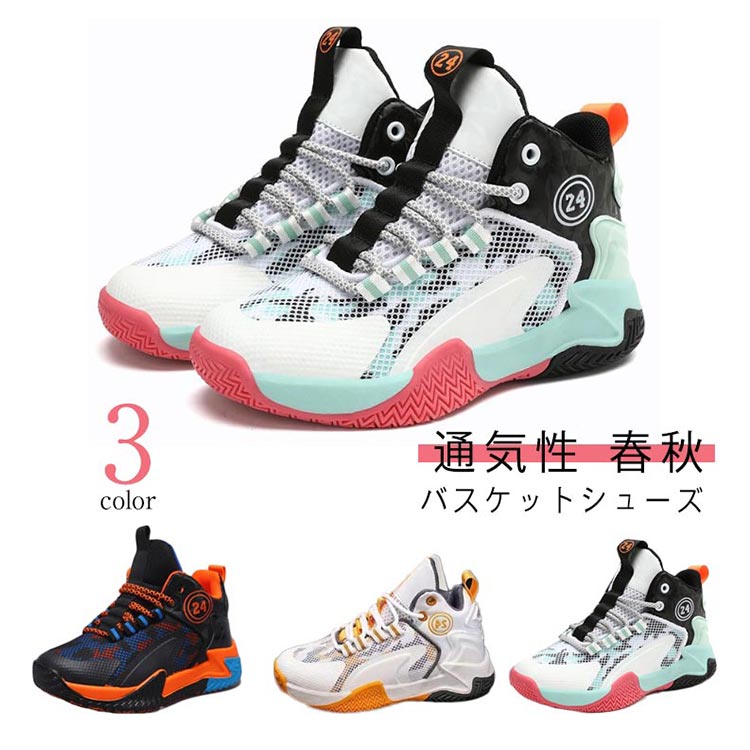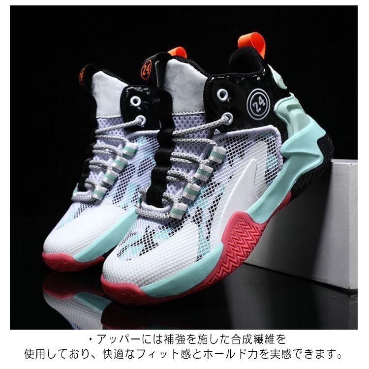 送料無料 バスケットシューズ キッズ ハイカット バッシュ ジュニアバスケットシューズ 紐 こども 運動靴 痛くない 歩きやすい 男の子 ジュニア 小学生 中学生 春 秋 メッシュ 通気性 快適 ランニング トレーニング