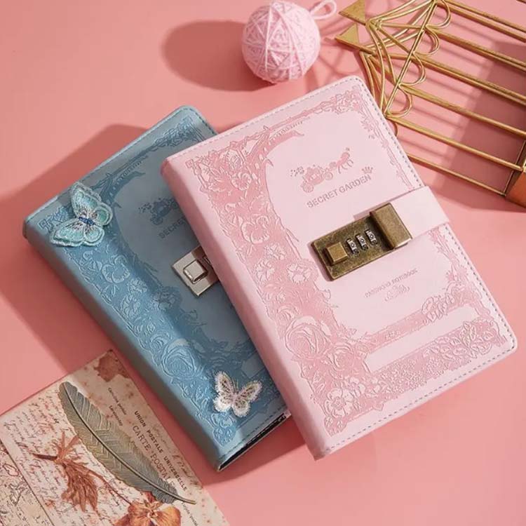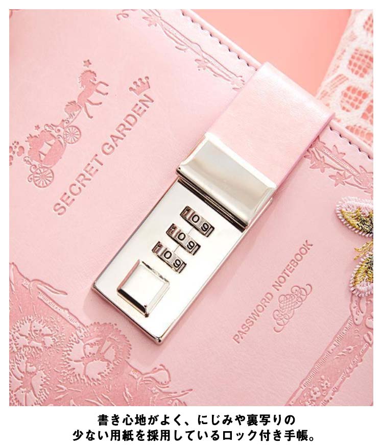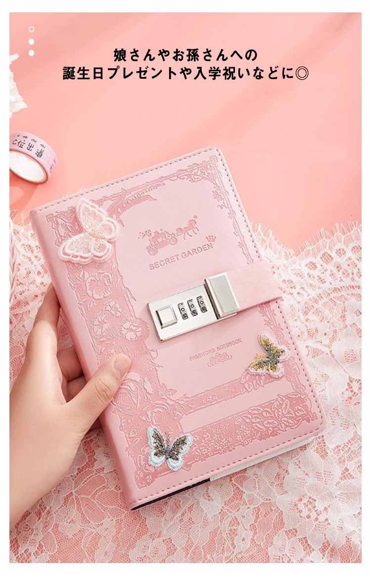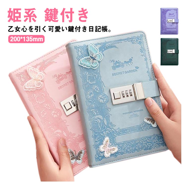 鍵付き日記帳 日記帳 ロック付き 手帳 日記 B6ノート 姫系 可愛い 鍵付きケース メモ帳 ダイアリー 鍵付き 旅行日記 B6サイズ ロック付き 日記用ノートブック 女子 女の子 学生 文房具 誕生日 記念日 ギフト 贈り物 ガーリー