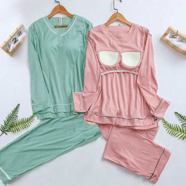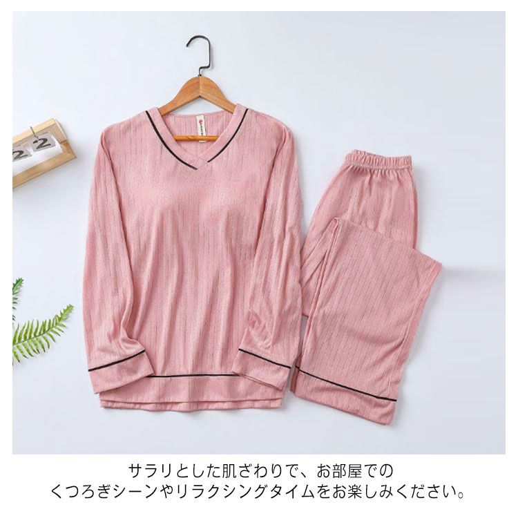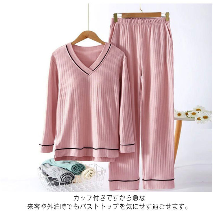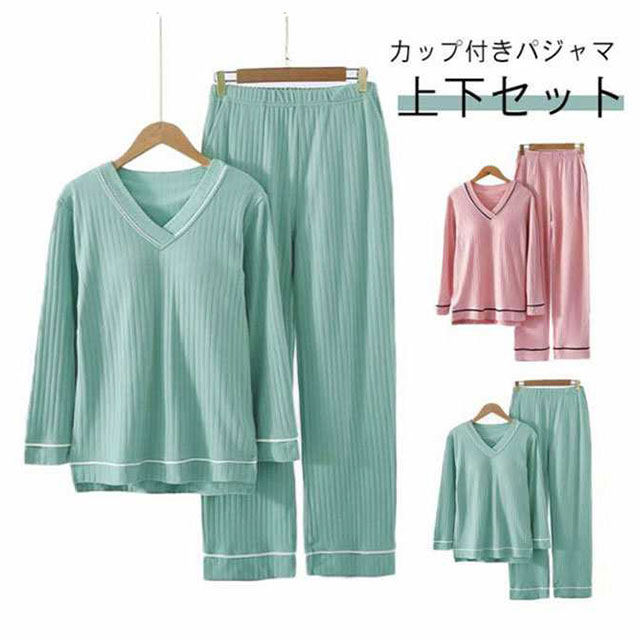 カップ付き パジャマ 上下セット 長袖 ルームウェア リブ パンツ レディース ゆったり 大きいサイズ 部屋着 快適 ウエストゴム ナイトウェア 寝間着 セットアップ 春 夏 秋 柔らか 可愛い 贈り物 プレゼント ギフト 無地 送料無料