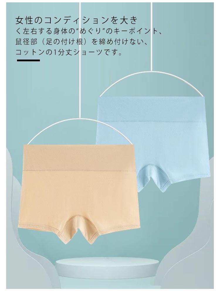 ふわんとマシュマロのような肌ざわり。女性のコンディションを大きく左右する身体の“めぐり”のキーポイント、鼠径部(足の付け根)を締め付けない、コットンの1分丈ショーツです。それでいて身体のラインに美しく沿う繊細なタッチを兼ね備えています。身体を思いながら、世界のモノにまつわる問題に対しても向き合う糸口にもなれたら。自分も、未来も気持ちよくなれる解放ショーツです。