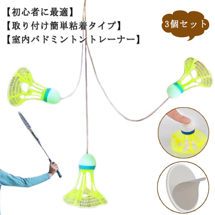 室内 バドミントン 戻ってくる バドミントントレーナー ボール 3個セット 光るバドミントンボール バドミントン用ボール 自動リターン 粘着タイプ 自動リバウンド シングルプレーヤー一人 練習 練習用 自宅 室内 初心者向け スポーツ用品