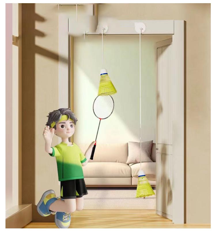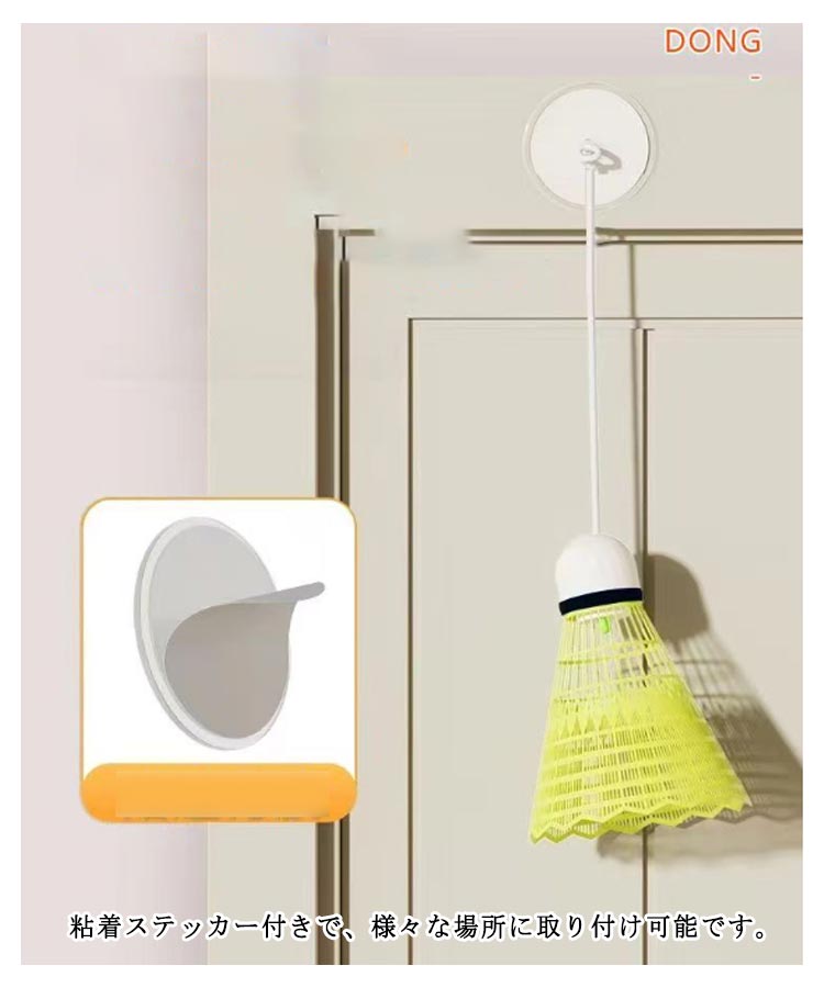 【初心者に最適】 【室内バドミントントレーナー】【取り付け簡単粘着タイプ】 ボールを拾う必要がなく、いつでもバトミントンの練習が自宅でできます。伸びの高いストリングにより、練習でも本格的なボール特性を体感できます。ニーズに合わせて1m~2mの間で調整できます。粘着ステッカー付きで、様々な場所に取り付け可能です。