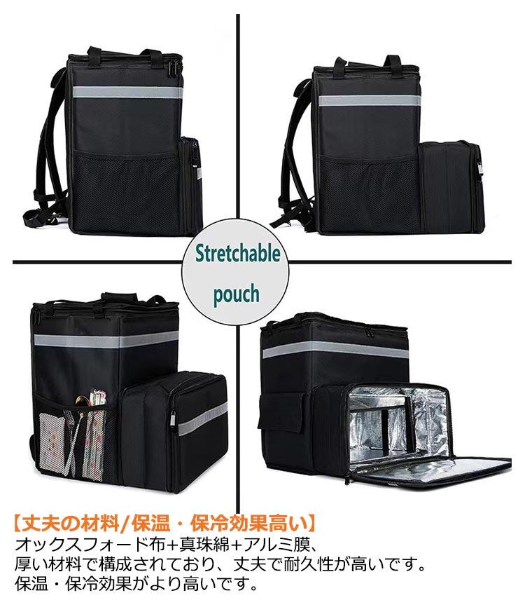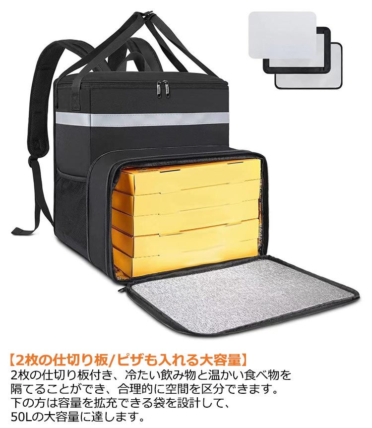 デリバリーバッグ 出前館 ウーバーイーツ 保温 保冷 フード デリバリー バッグ 防水 配達バッグ 50L 保温保冷 ピザ 寿司入り 保温ピザバッグ 拡張可 耐荷重 仕切り板2枚 折りたたみ 配達用 大容量 Uber Eats ウバック リュック カバン バックパック