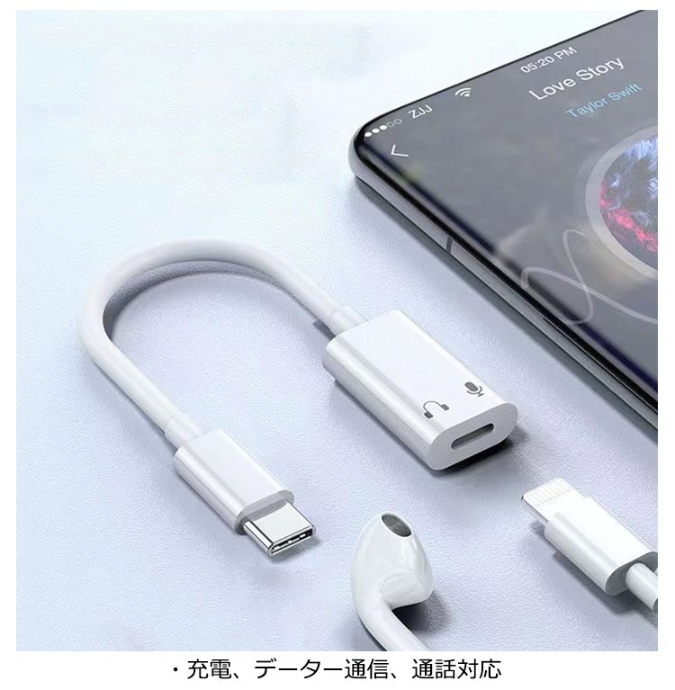 Lightningイヤホン to Type-C 変換アダプター 充電 データー通信 音楽 通話対応 音量調整 オーディオ専用変換アダプターUSB タイプC イヤフォン ヘッドホン 変換ケーブル