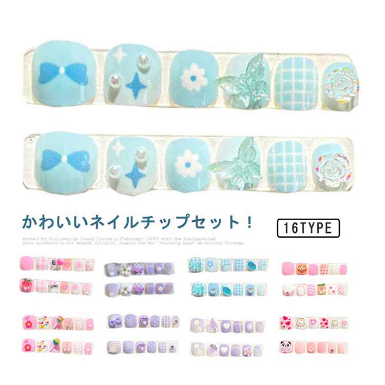 全16種類 ネイルチップ キッズ 12枚入り 立体 3d 貼るだけ 付け爪 こども用 ネイル チップ かわいい 花 誕生日 可愛い おしゃれ 映え 韓国