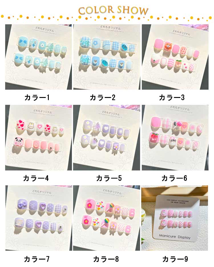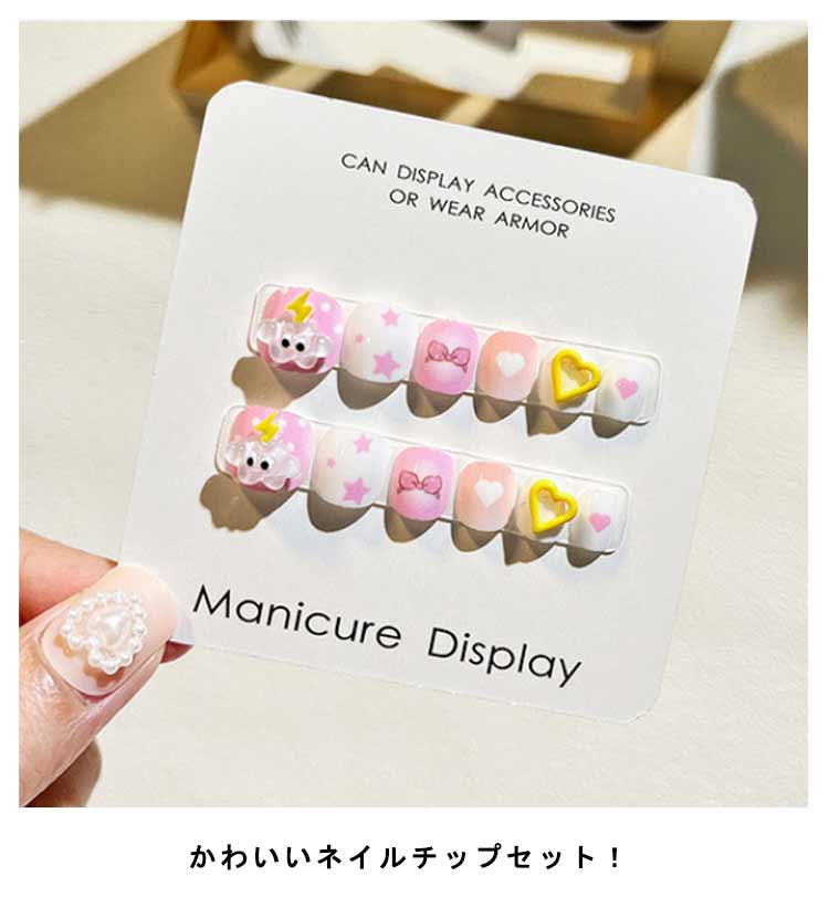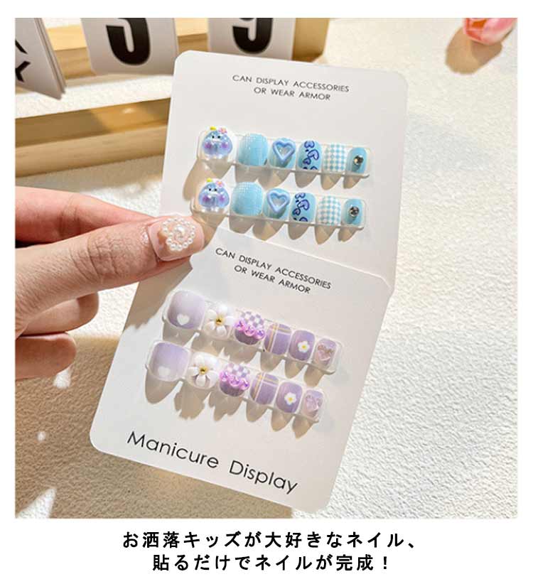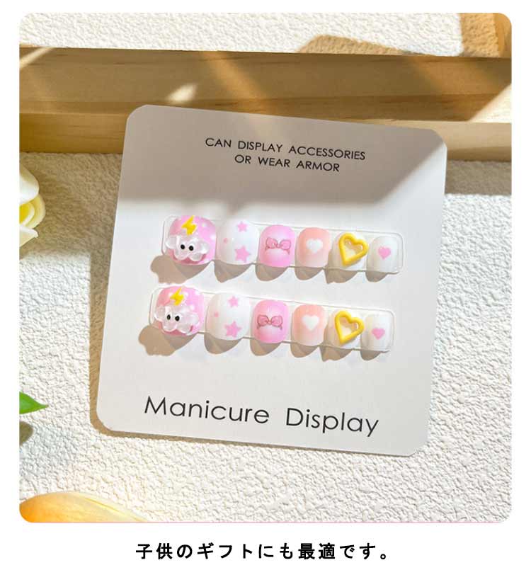 | かわいいネイルチップセット! お洒落キッズが大好きなネイル、貼るだけでネイルが完成! 子供のギフトにも最適です。 | |