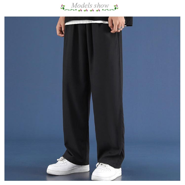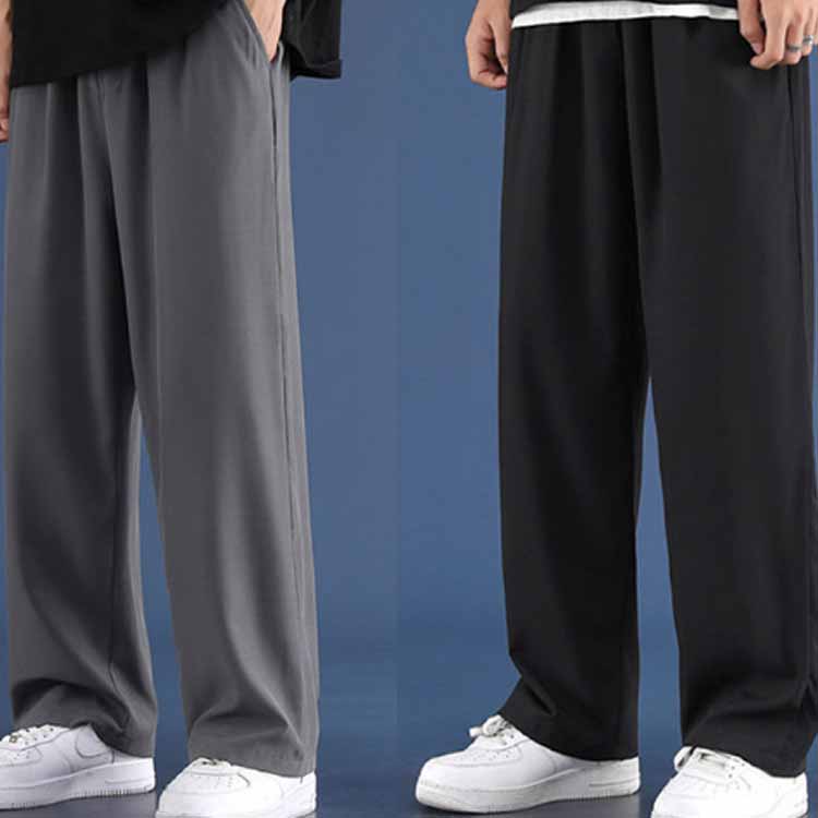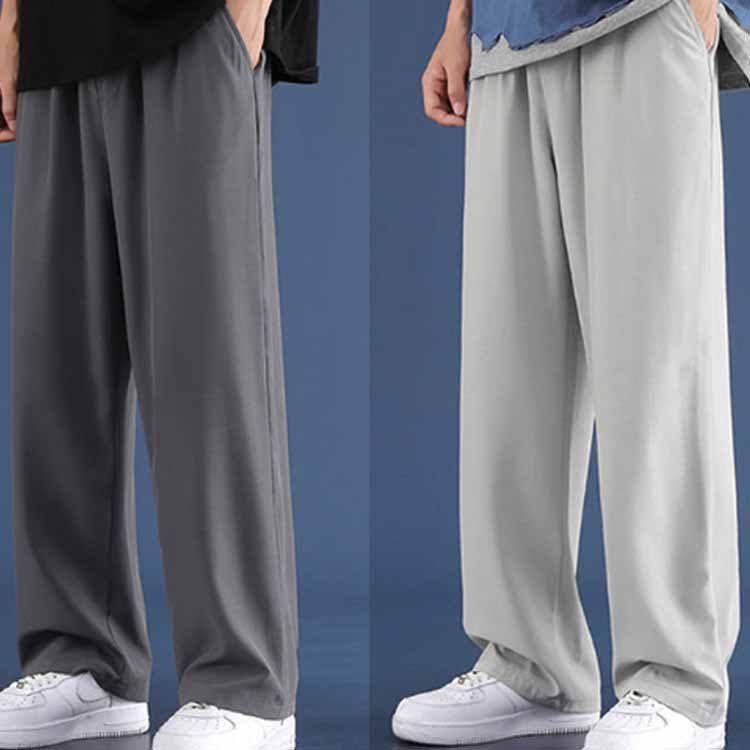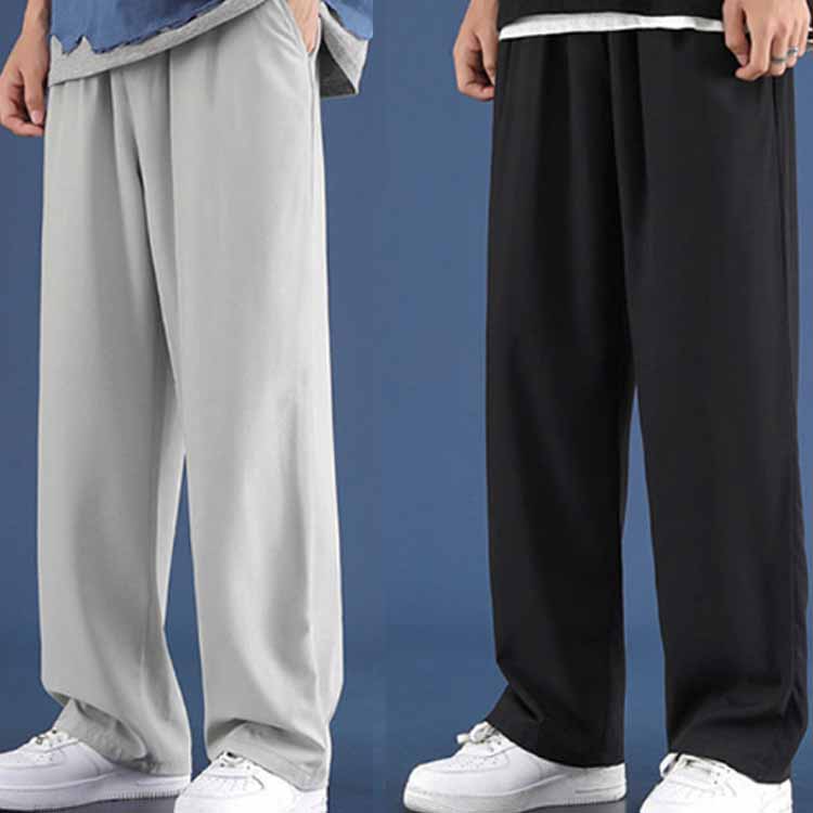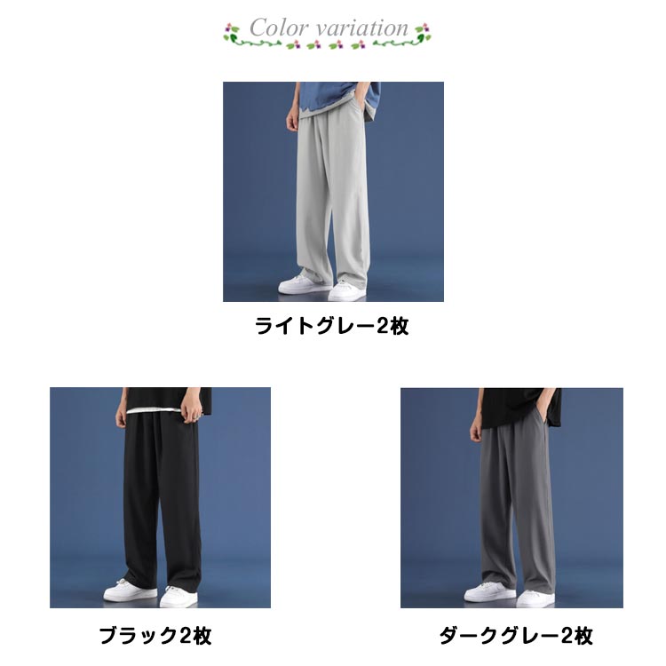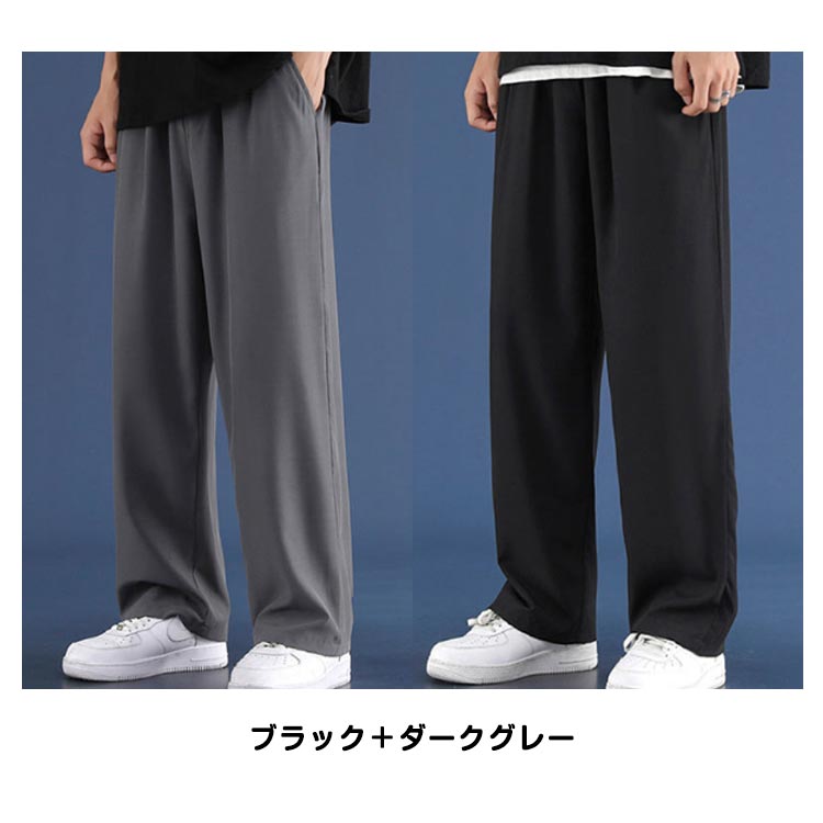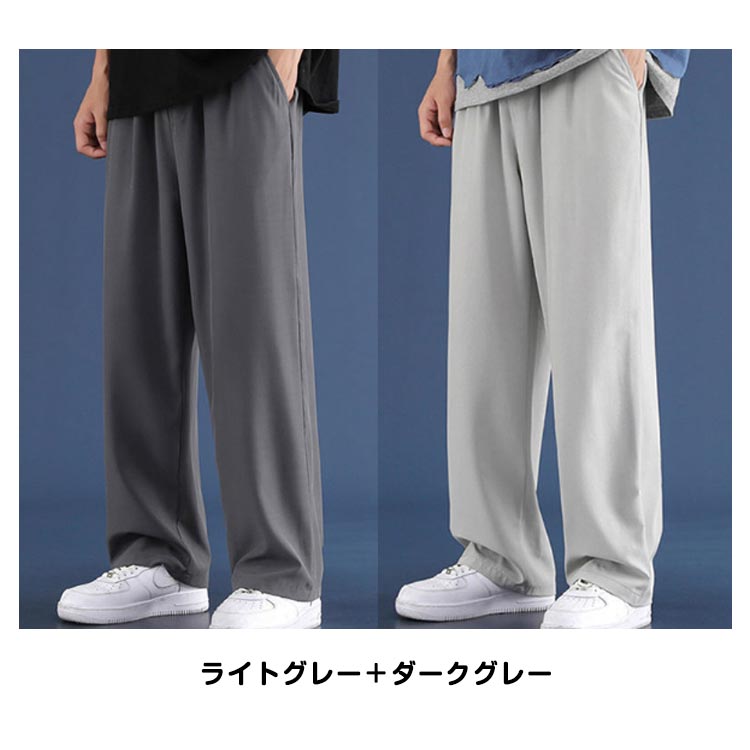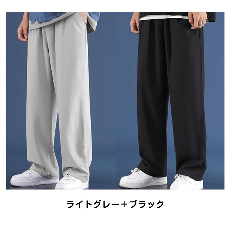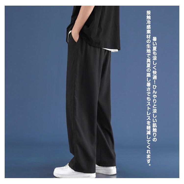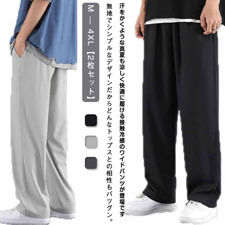 【2枚セット】 ワイドパンツ メンズ 冷感パンツ 夏用 接触冷感 ストレートパンツ ひんやり 涼しい ロングパンツ アイスシルクパンツ 吸水速乾 部屋着 運動着 イージーパンツ 薄手 ゴルフパンツ ウエストゴム 無地 シンプル カジュアルパンツ 送料無料