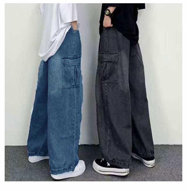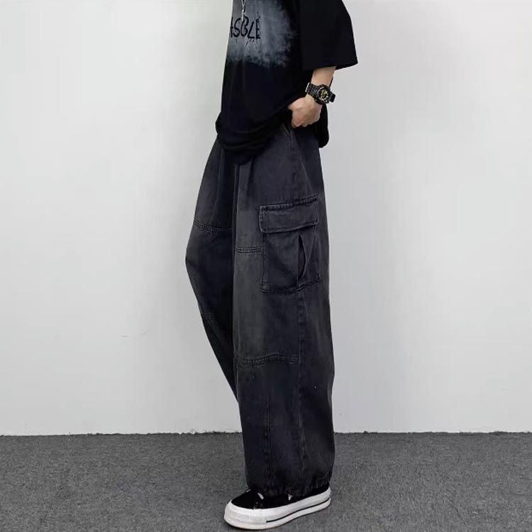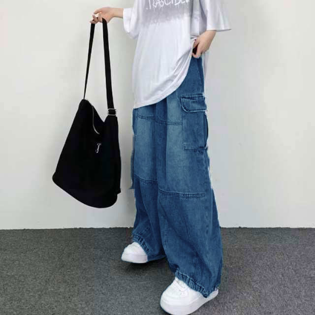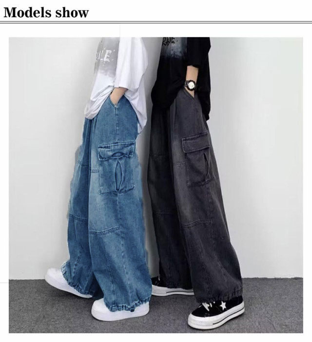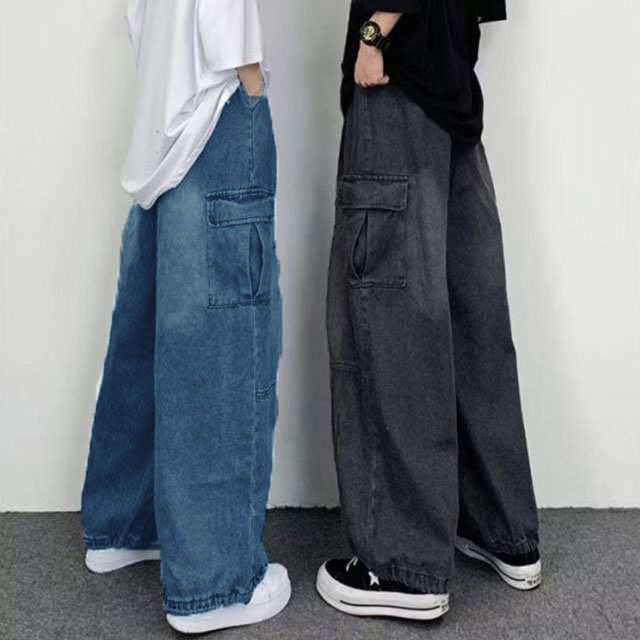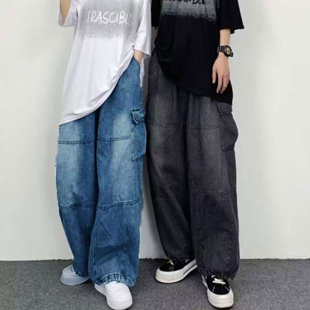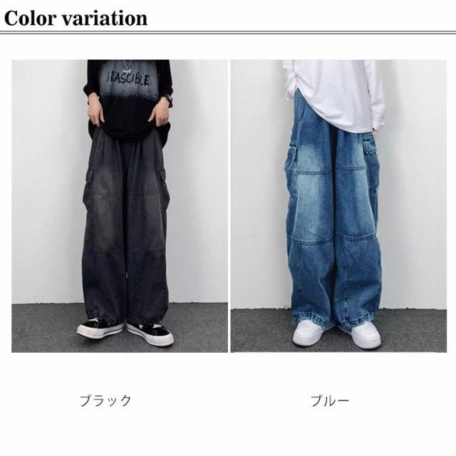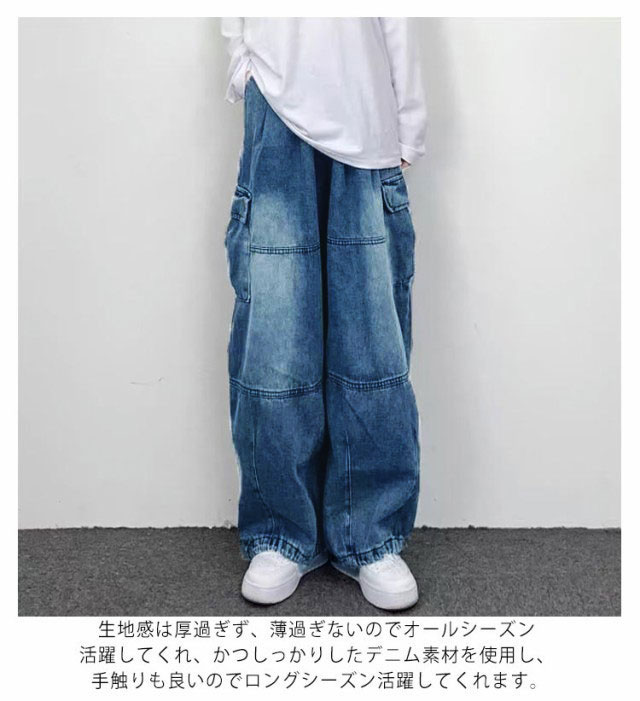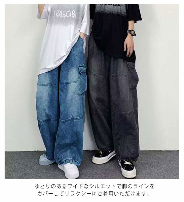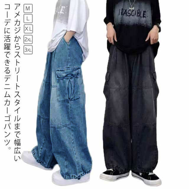 送料無料 デニム カーゴパンツ メンズ ゆったり ワイド デニムパンツ ビッグ ジーンズ ジーパン 大きいサイズ イージーパンツ ワークパンツ ロングパンツ ストリート アメカジ B系 おしゃれ カジュアル ダンス衣装 ヒップホップ 春夏 秋冬