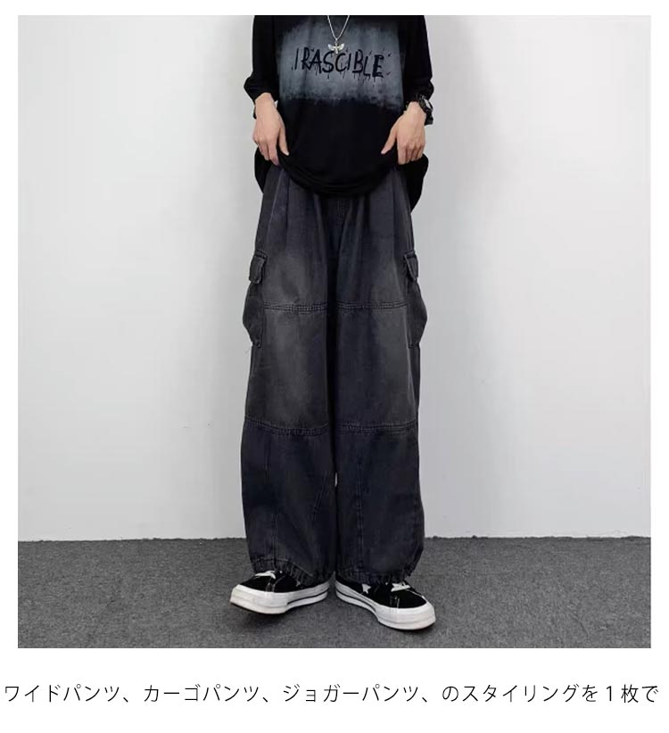 | アメカジからストリートスタイルまで幅広いコーデに活躍できるデニムカーゴパンツ。 ゆとりのあるワイドなシルエットで脚のラインをカバーしてリラクシーにご着用いただけます。 ワイドパンツ、カーゴパンツ、ジョガーパンツ、のスタイリングを1枚で 生地感は厚過ぎず、薄過ぎないのでオールシーズン活躍してくれ、かつしっかりしたデニム素材を使用し、 手触りも良いのでロングシーズン活躍してくれます。 | |
