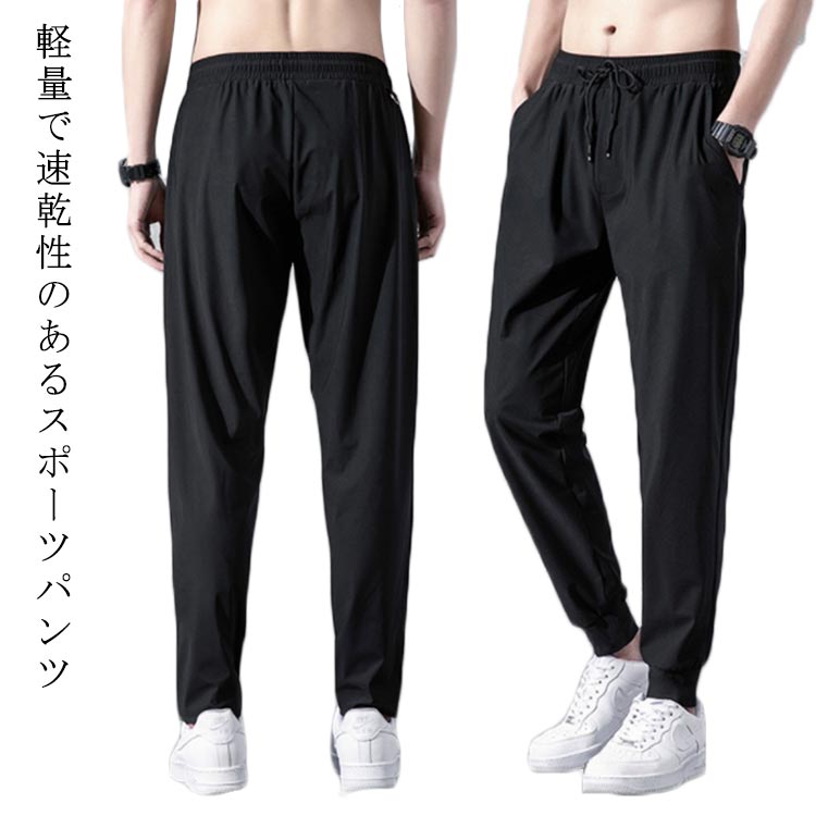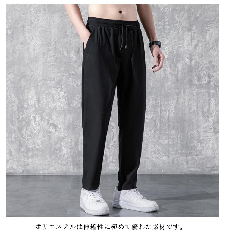 スポーツパンツ ランニング ひんやり 接触冷感 速乾タイプ メンズウエア スポーツウェア ブラック 黒 ランニングウェア ロングパンツ ジム ヨガウエア ランニングウエア ひんやりパンツ ロングパンツ ジム ヨガウエア ヨガウエアー スポーツ ランニング