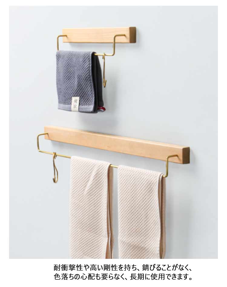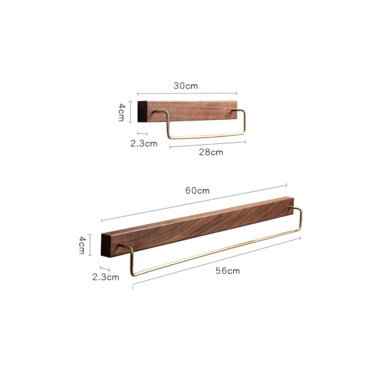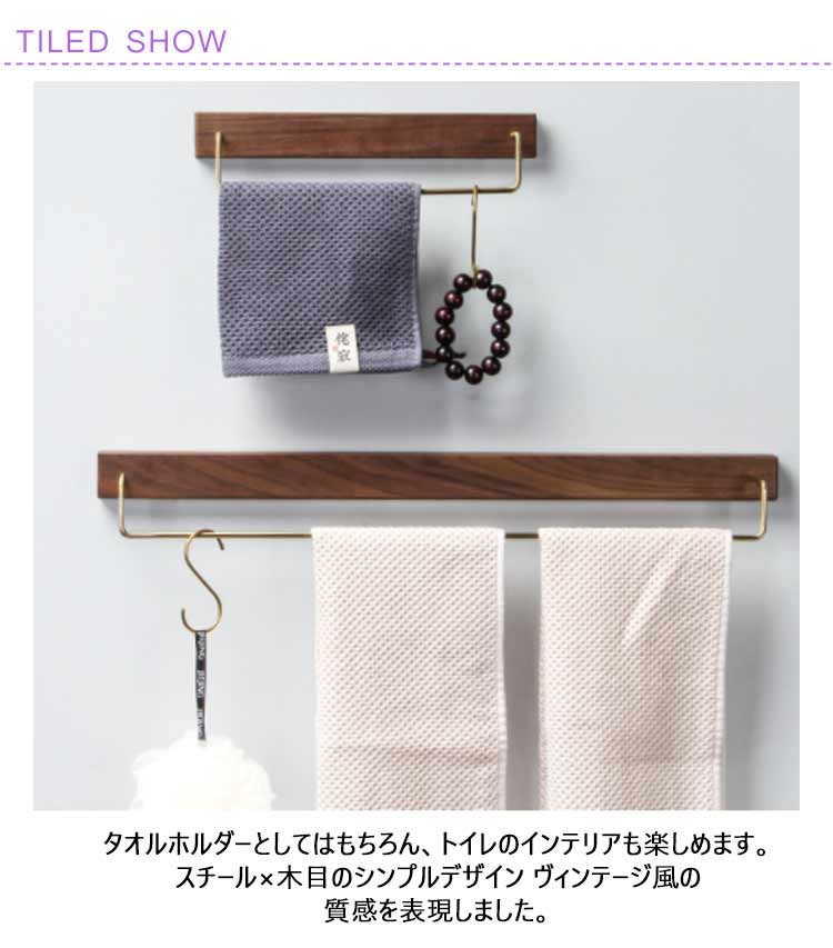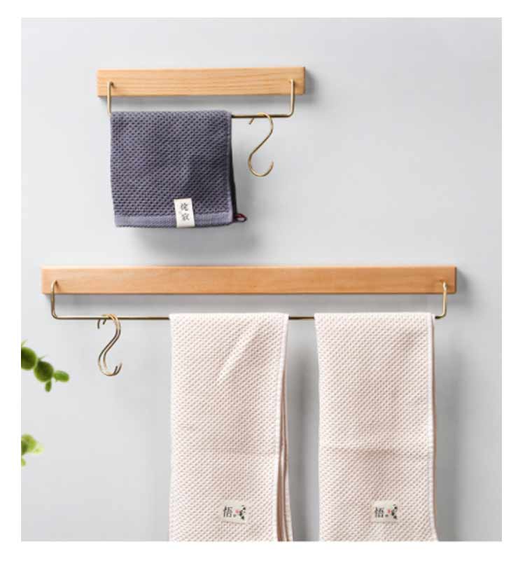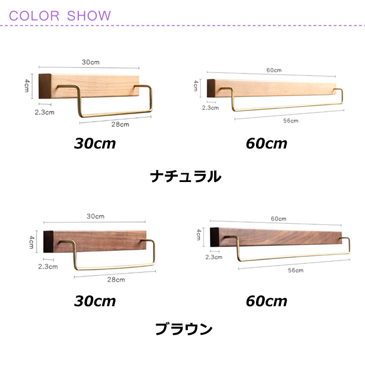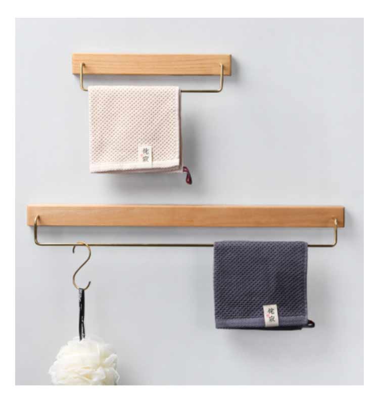 タオルハンガー 木製 真鍮 タオル掛け おしゃれ 北欧 洗面所 壁 60cm 30cm タオル掛けハンガー トイレ 木 シンプル ヴィンテージ風 耐衝撃性 錆びにくい 北欧風 タオル ハンガー おしゃれ 一人暮らし 引越し祝い タオルホルダー 自宅用 レストラン用