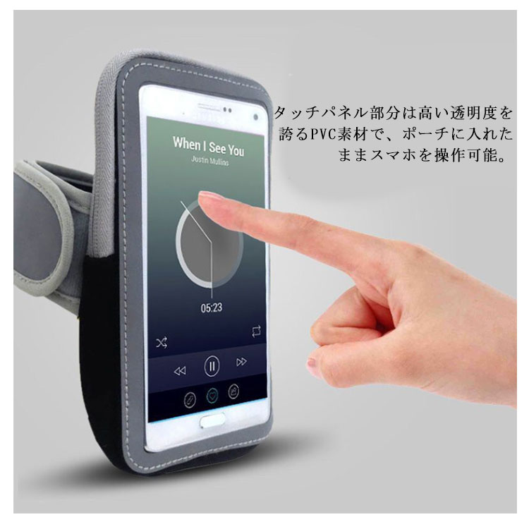 | スマホや小物などを入れておく、アームポーチです。 サイズ調整が可能で、メンズ、レディース対応の男女兼用モデル。 腕を巻く部分は面ファスナーで調整可能!ソフトで伸縮素材のため、付け心地抜群。 タッチパネル部分は高い透明度を誇るPVC素材で、ポーチに入れたままスマホを操作可能。 軽くて大容量のアームポーチは二つのスタイリッシュなポケット仕様なので、運動中に財布、鍵、携帯、ジェルドリンクなど自在で収納可能。 音楽を聴くためのイヤホン専用穴が設けられていますので、余分なコードは収納しておけます。 | |