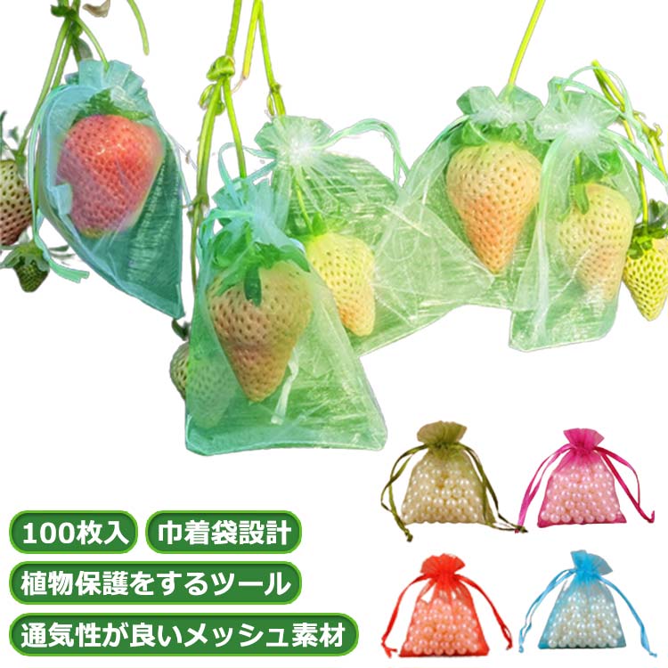 果物袋 保護ネット 防虫 ネット 果物保護ネット 100枚入 果樹用防鳥ネット オーガンジー生地 通気性 メッシュ 鳥よけネット 鳩よけネット 果物保護バッグ 果実袋 イチゴ 鳥よけ 虫よけ カラス対策 害虫鳥避け 桃 イチゴ 農業用 野菜保護 収穫 栽培用 巾着袋