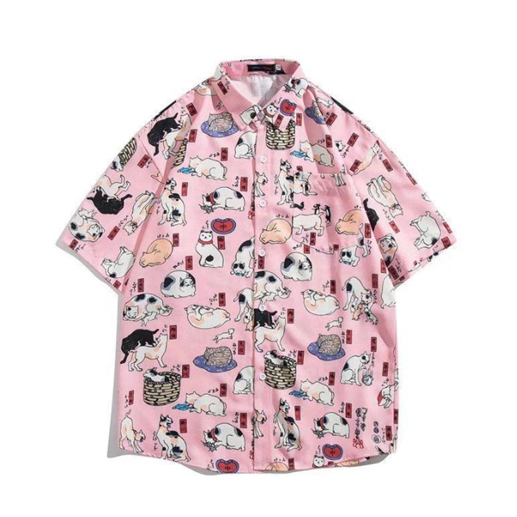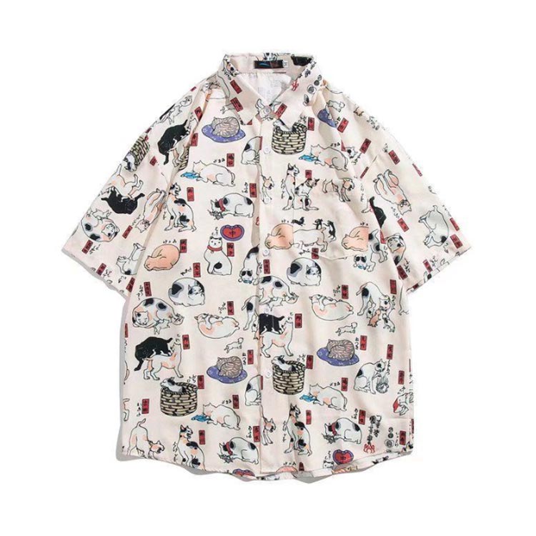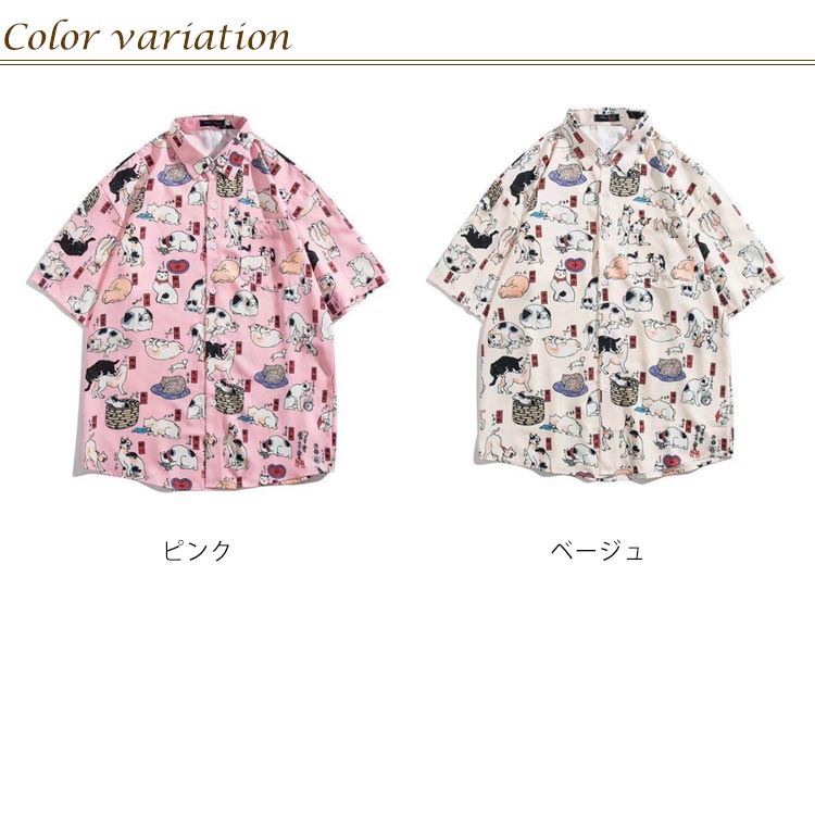 シャツ アロハシャツ 夏 猫柄 メンズ 半袖 ゆったり おしゃれ 半袖シャツ 夏服 ワイシャツ カッターシャツ カジュアルシャツ 速乾 通気 おしゃれ ノーアイロン 猫柄 大きいサイズ