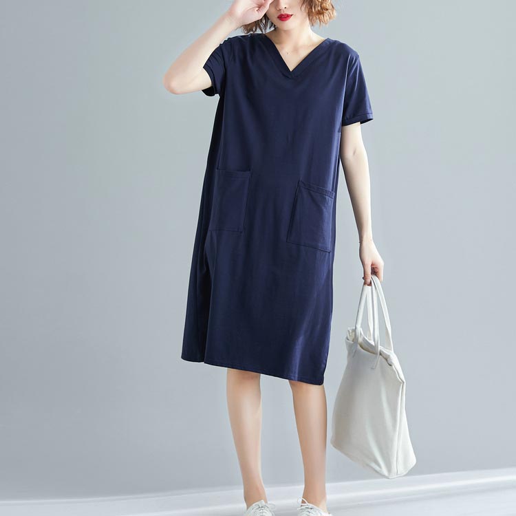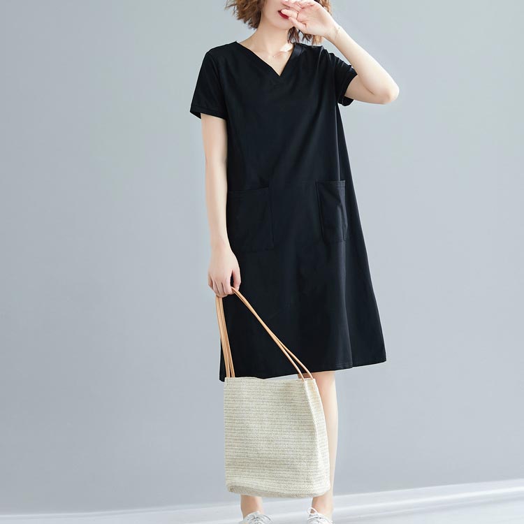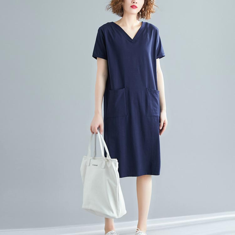 Tシャツがそのまま長くなった楽ちんワンピース、幅広いコーディネートにマッチします。首元をすっきりと見せてくれるVネックデザインで華奢見え効果もあります。両サイドにポケットがついていてより実用性アップ!レイヤードのベースとして使ったり、1枚で主役として使ったりできる万能アイテムです。